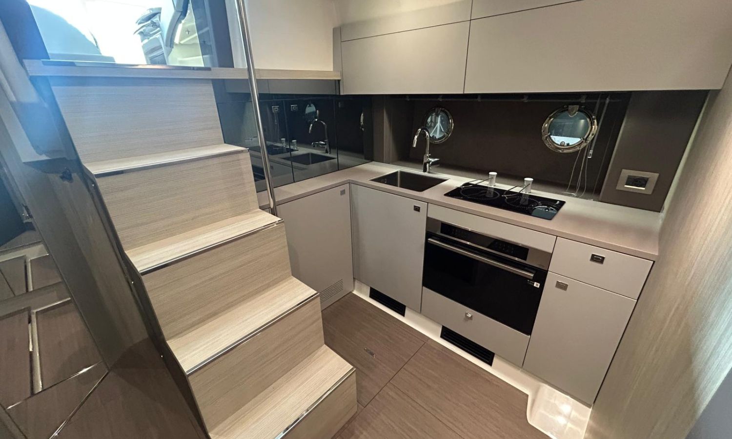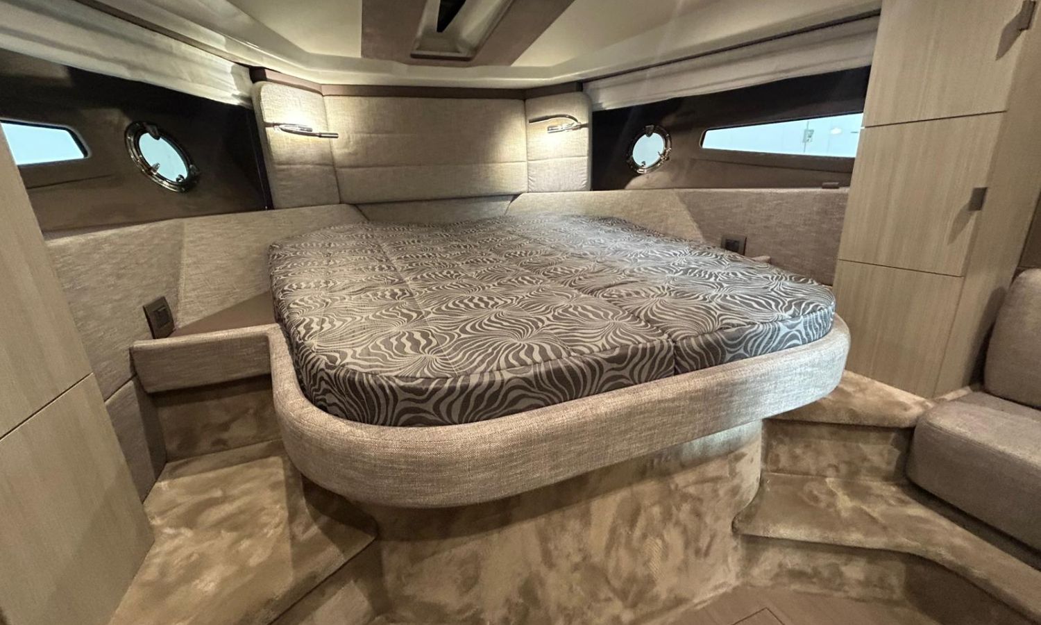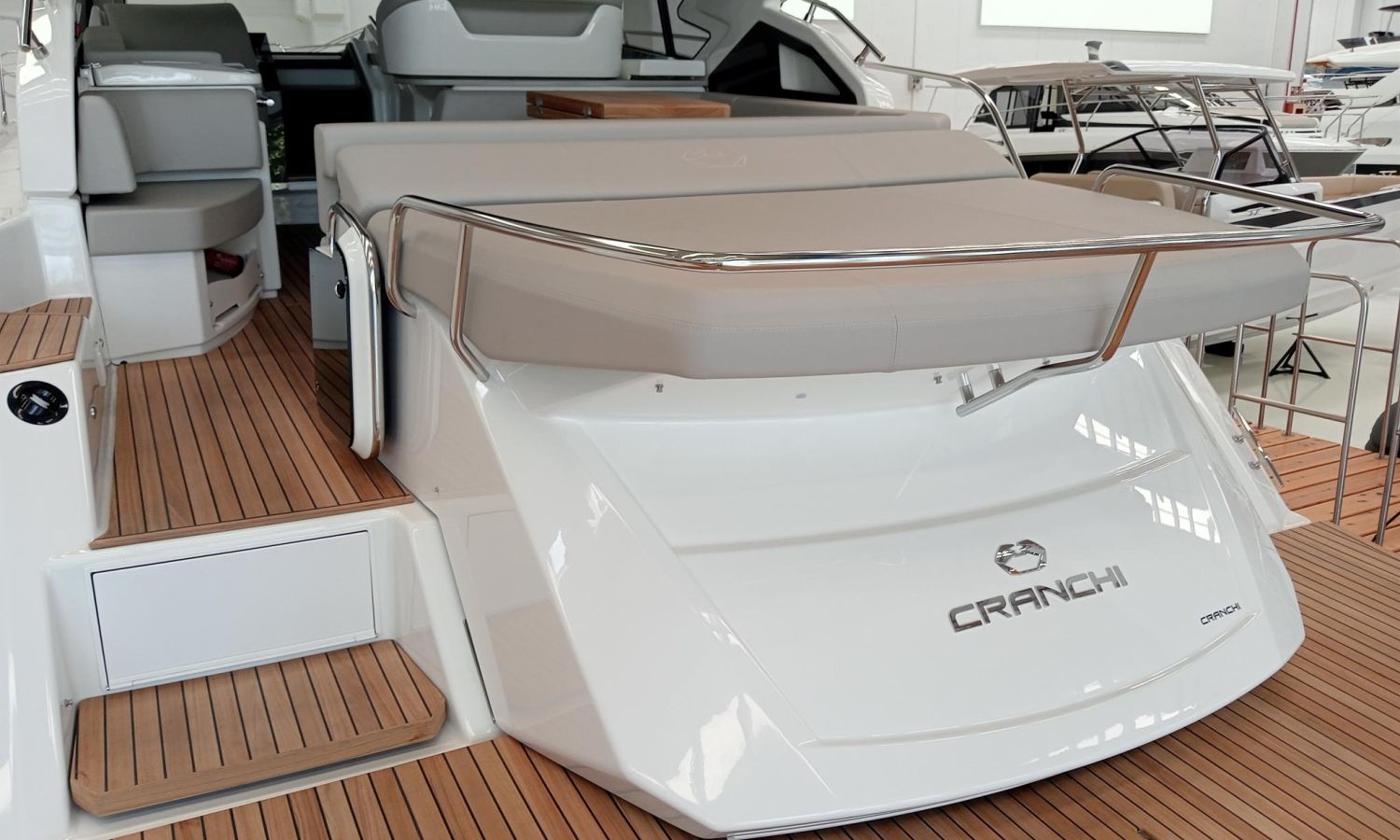Bateau en stock. Livraison immédiate. Modèle M 44 HT du prestigieux chantier naval Cranchi. Longueur totale de 13,82 m et coque couleur blanc avec hard top noir. Il dispose d'une grande habitabilité intérieure, une grande plate-forme de bain hydraulique et un garage.EMP-Nº 7964