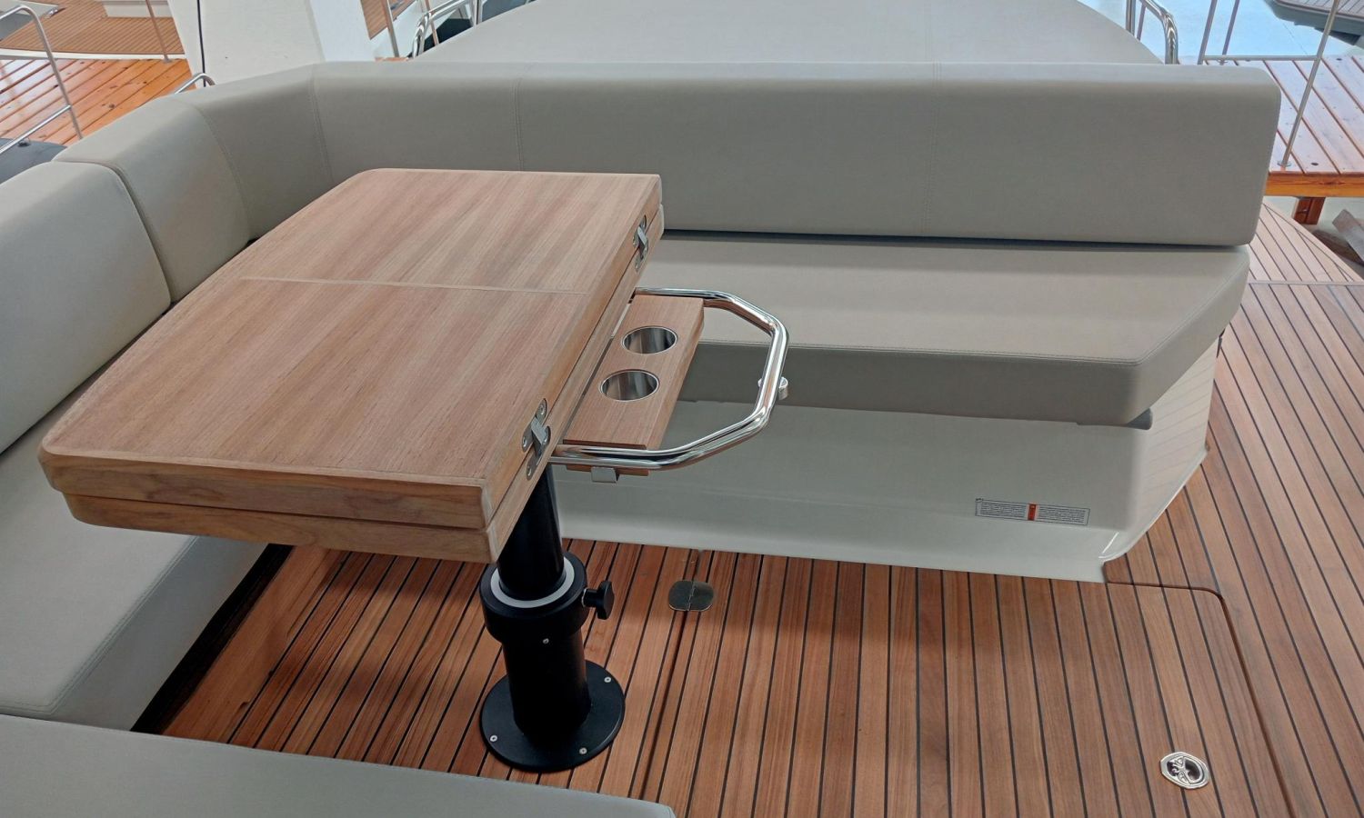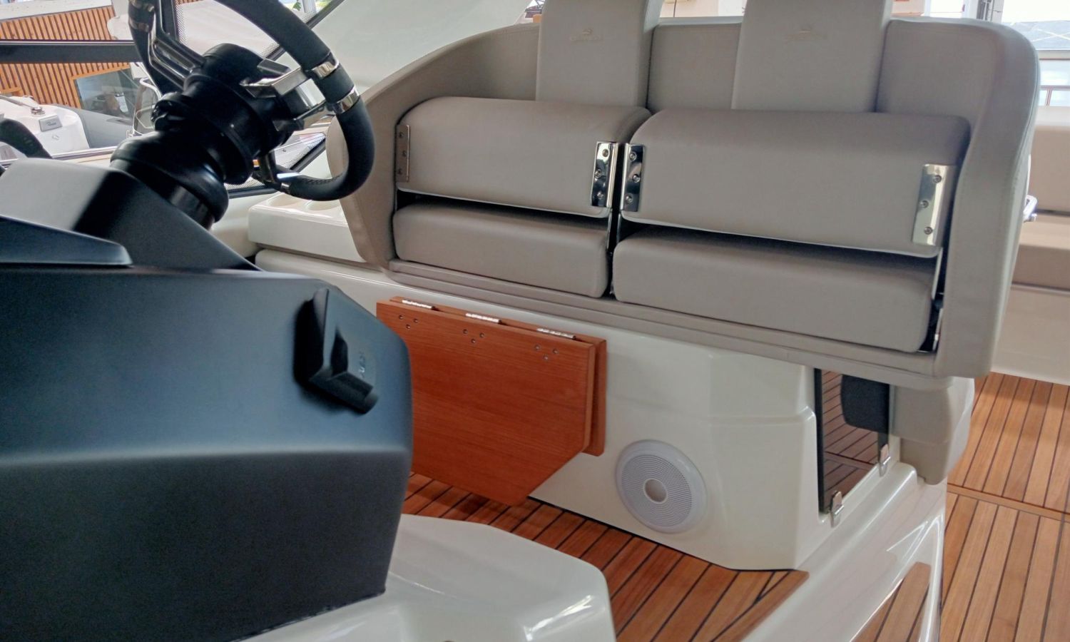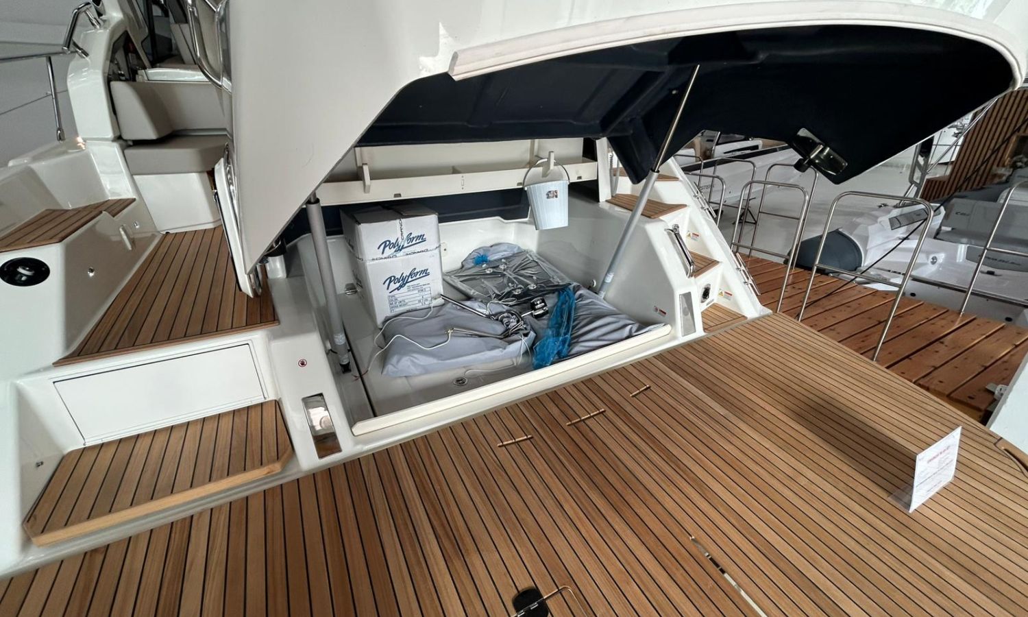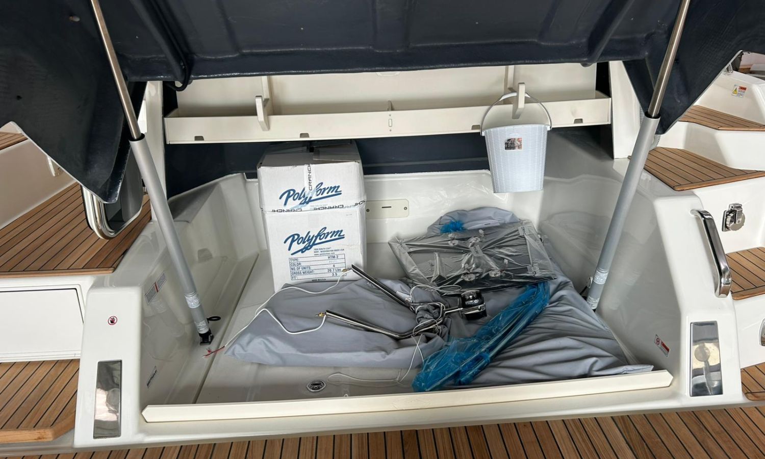 Réservoir d´eaux noires - Climatisation 16.000 BTU avec pompe à chaleur - Taud de fermeture complete arrière - Propulseur d´étrave avec extincteur automatique - Réfrigérateur de cockpit - GPS + Traceur de cartes - Générateur 8 kW - Passerelle hydraulique - Plateforme élévatrice pliable en teck pour poste de pilotage - Pilote automatique - Plateforme arrière hydraulique montée/descente - Cockpit en teck - VHF / DSC - Copie Certificat CE et déclaration de conformité - Toile soft top (couleur alternative au standard) - Hard top en couleur laqué - Préparation, lancement, livraison et preuve de mer - Transport chantier nava à Costa Brava.Description du bateau