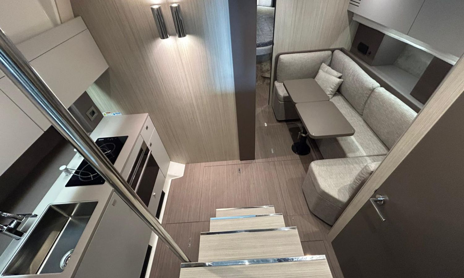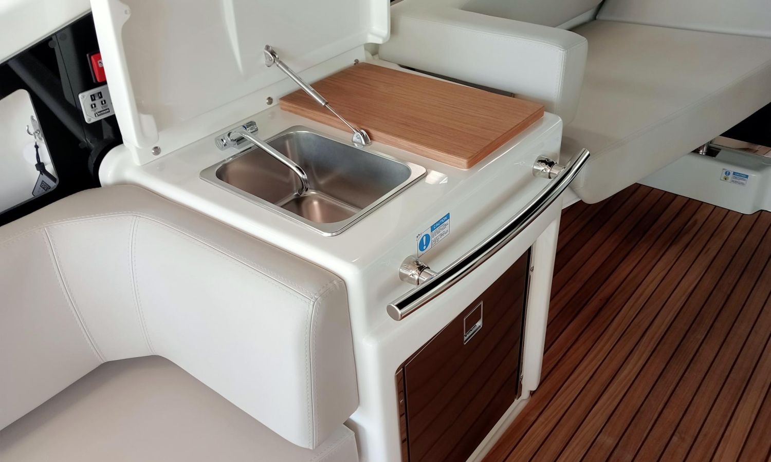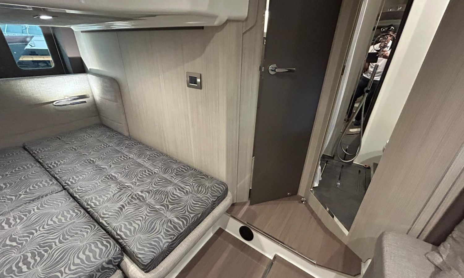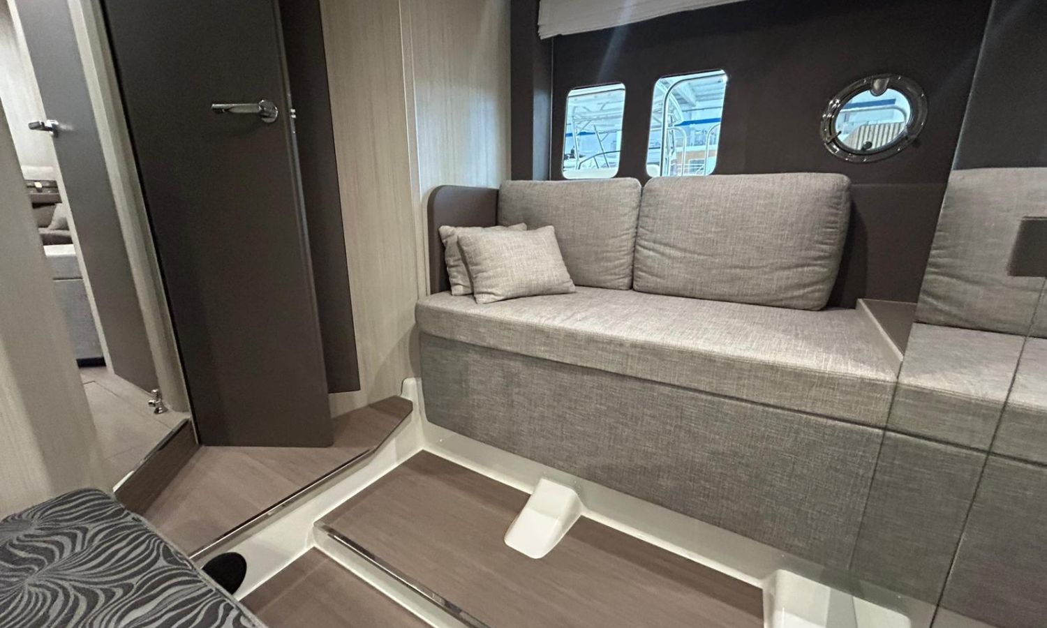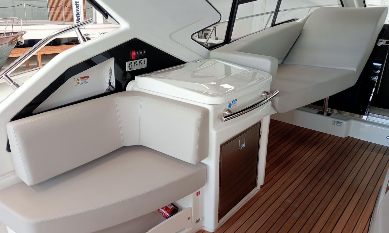 Réservoir d´eaux noires - Climatisation 16.000 BTU avec pompe à chaleur - Taud de fermeture complete arrière - Propulseur d´étrave avec extincteur automatique - Réfrigérateur de cockpit - GPS + Traceur de cartes - Générateur 8 kW - Passerelle hydraulique - Plateforme élévatrice pliable en teck pour poste de pilotage - Pilote automatique - Plateforme arrière hydraulique montée/descente - Cockpit en teck - VHF / DSC - Copie Certificat CE et déclaration de conformité - Toile soft top (couleur alternative au standard) - Hard top en couleur laqué - Préparation, lancement, livraison et preuve de mer - Transport chantier nava à Costa Brava.Description du bateau