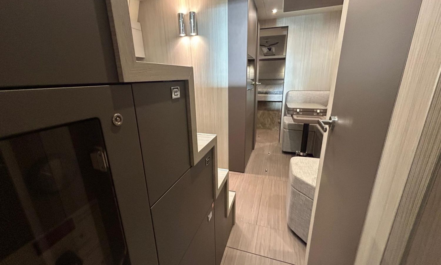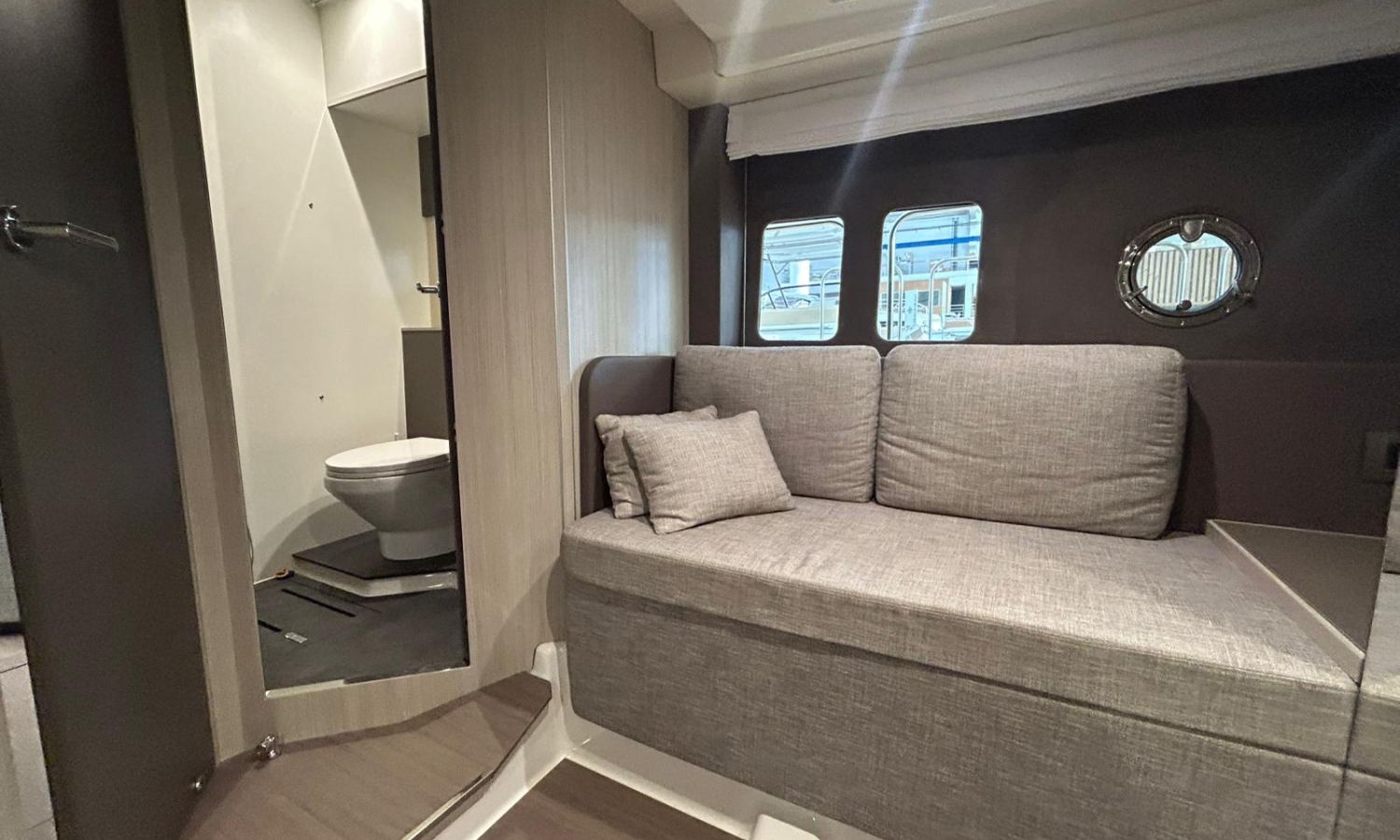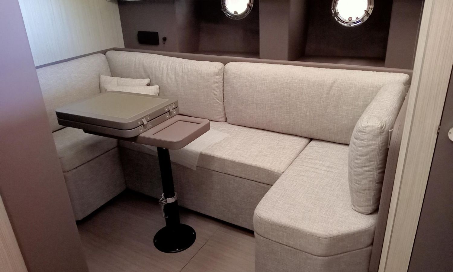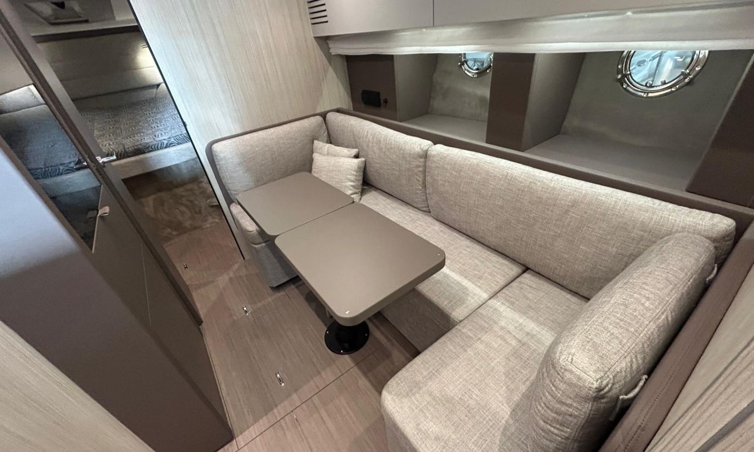 Réservoir d´eaux noires - Climatisation 16.000 BTU avec pompe à chaleur - Taud de fermeture complete arrière - Propulseur d´étrave avec extincteur automatique - Réfrigérateur de cockpit - GPS + Traceur de cartes - Générateur 8 kW - Passerelle hydraulique - Plateforme élévatrice pliable en teck pour poste de pilotage - Pilote automatique - Plateforme arrière hydraulique montée/descente - Cockpit en teck - VHF / DSC - Copie Certificat CE et déclaration de conformité - Toile soft top (couleur alternative au standard) - Hard top en couleur laqué - Préparation, lancement, livraison et preuve de mer - Transport chantier nava à Costa Brava.Description du bateau