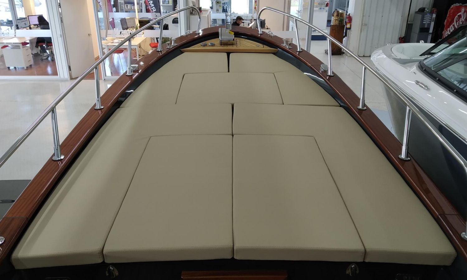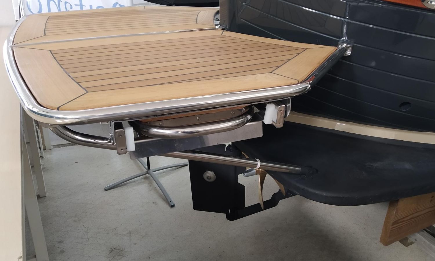 Coussins extérieurs - Taud de soleil - Douche de poupe avec réservoir d'eau de 110L - Plateforme de bain avec échelle - Surface du cockpit en teck (seulement à la poupe) - Guindeau électrique, ancre et chaîne - Propulseur d'étrave - Tauds microperforés (1 latéral et 1 postérieur) - Préparation, remise en main propre et test en mer - Transport chantier-Costa Brava.Description du bateau