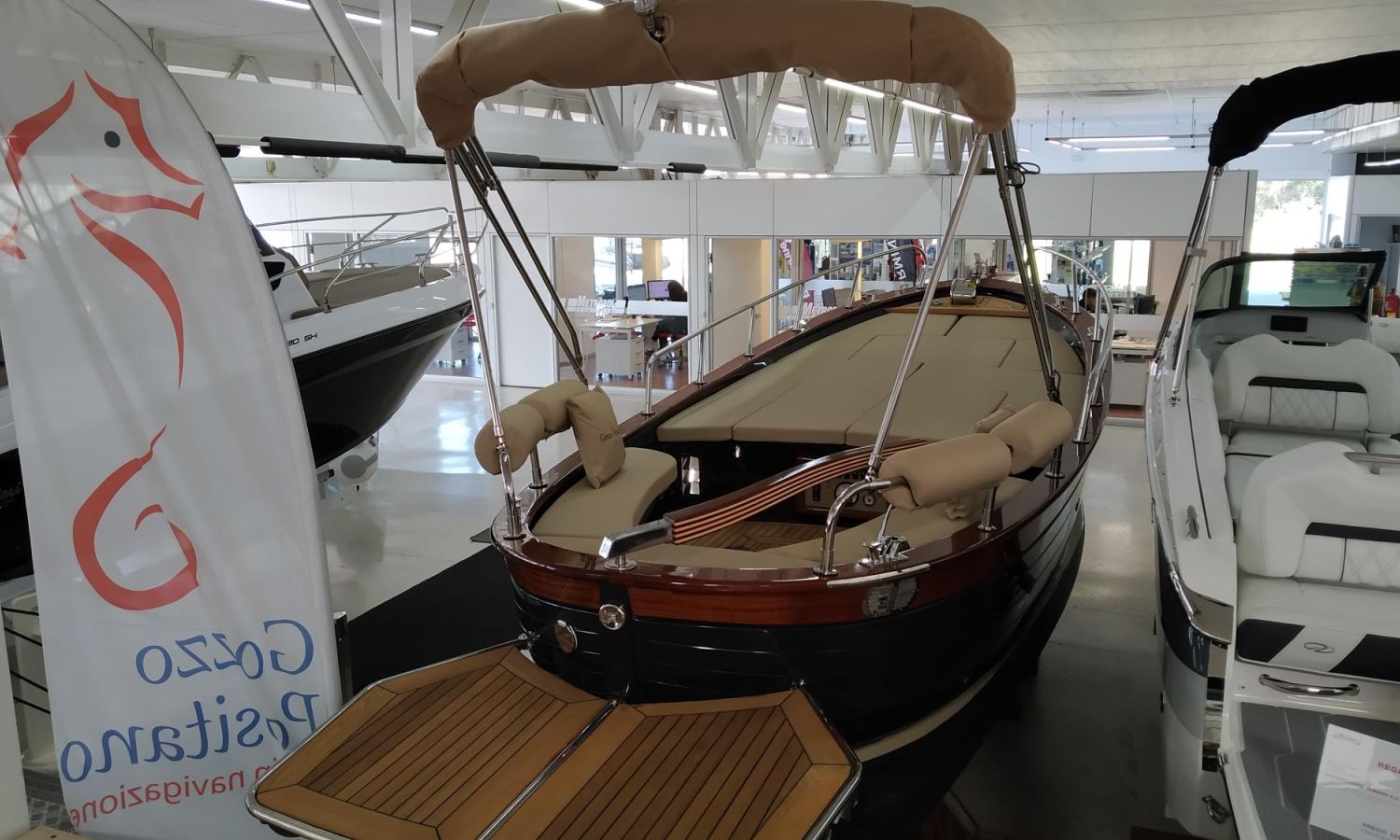 Bateau en fabrication. Livraison Février 2026. Banque de photos, couleurs et équipement peuvent ne correspondre pas exactement à l'unité offerte. Modèle Positano 23 du chantier naval napolitain Gozzo Positano de 7 mètres de longueur totale. Bateau avecd plate-forme de bain confortasble, aménagement spacieux.AST-Nº 02