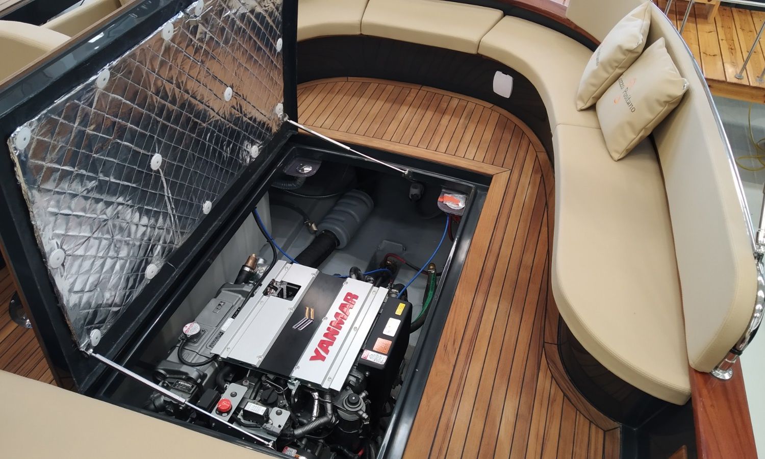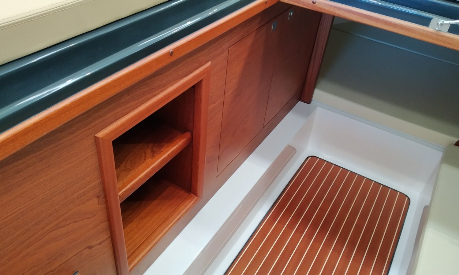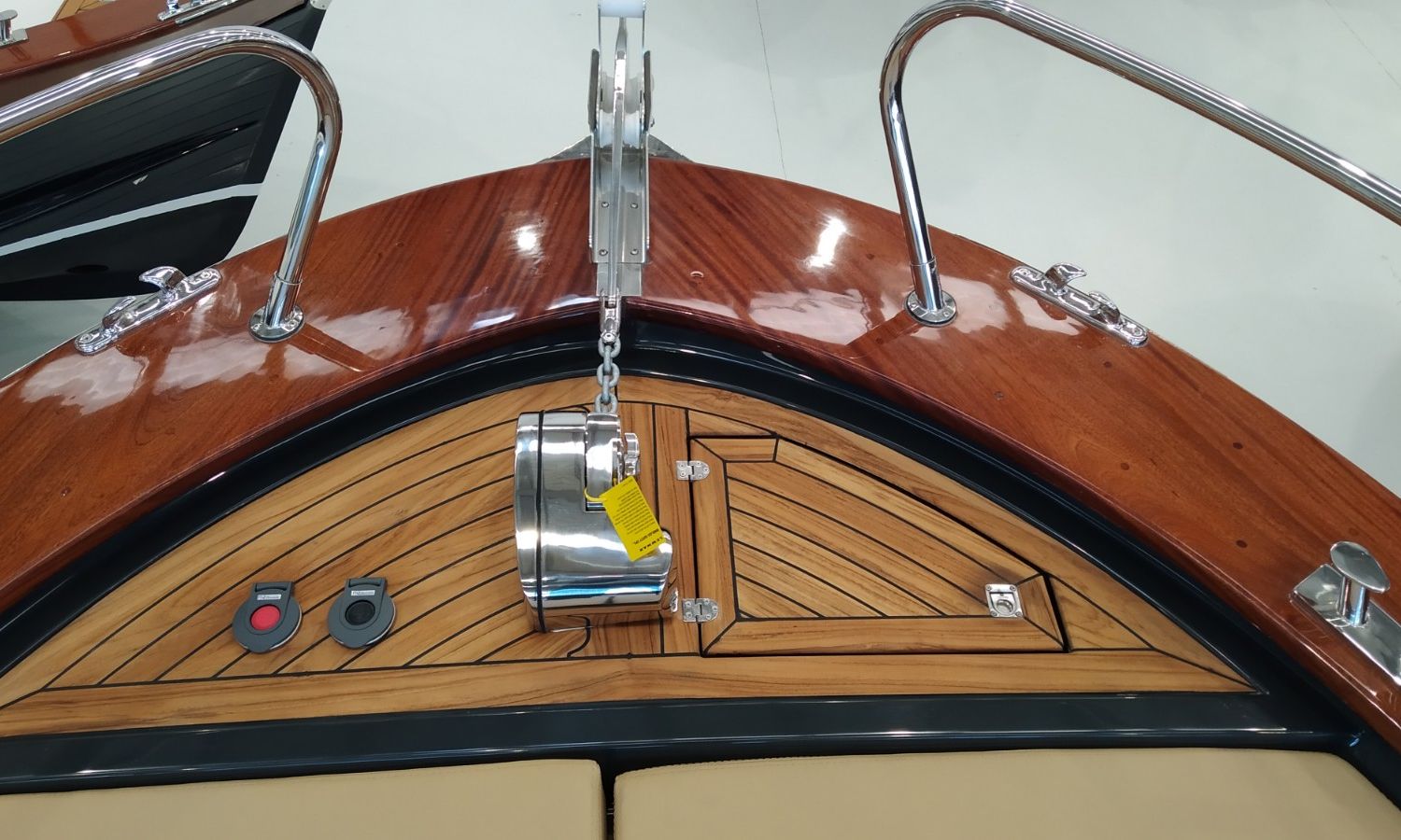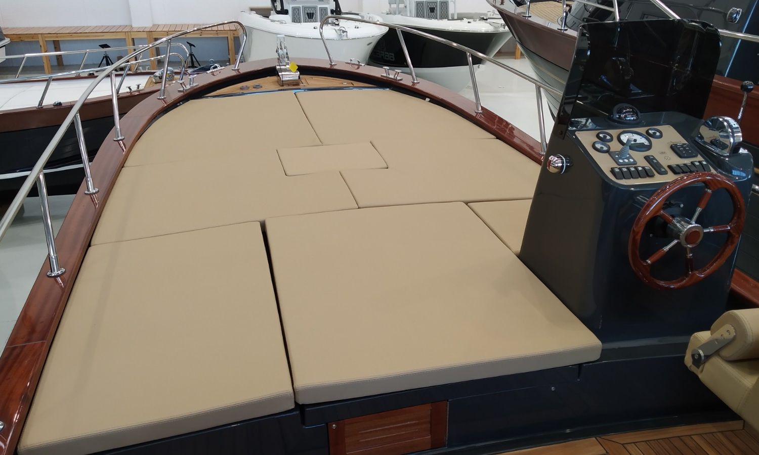 Console commandes avec instruments et siège pilote - Couverture console - Coussins extérieurs sur pont et sièges - Coussins intérieurs - Douche avec réservoir d'eaux - Propulseur d'étrave - Guindeau électrique avec ancre et chaîne - Plateforme de bain en fibre et teck avec échelle - Surface cockpit en teck (seulement poupe) - Taud de soleil - Supplément taud de soleil microperforé (1 à poupe et 1 latéral) - Préparation, remise en main propre et test en mer - Transport du chantier naval à la Costa Brava.Description du bateau