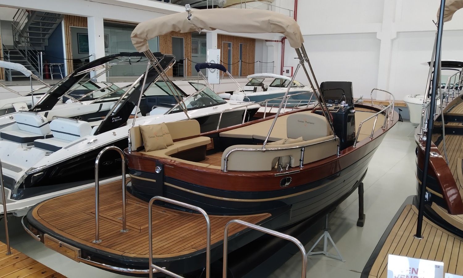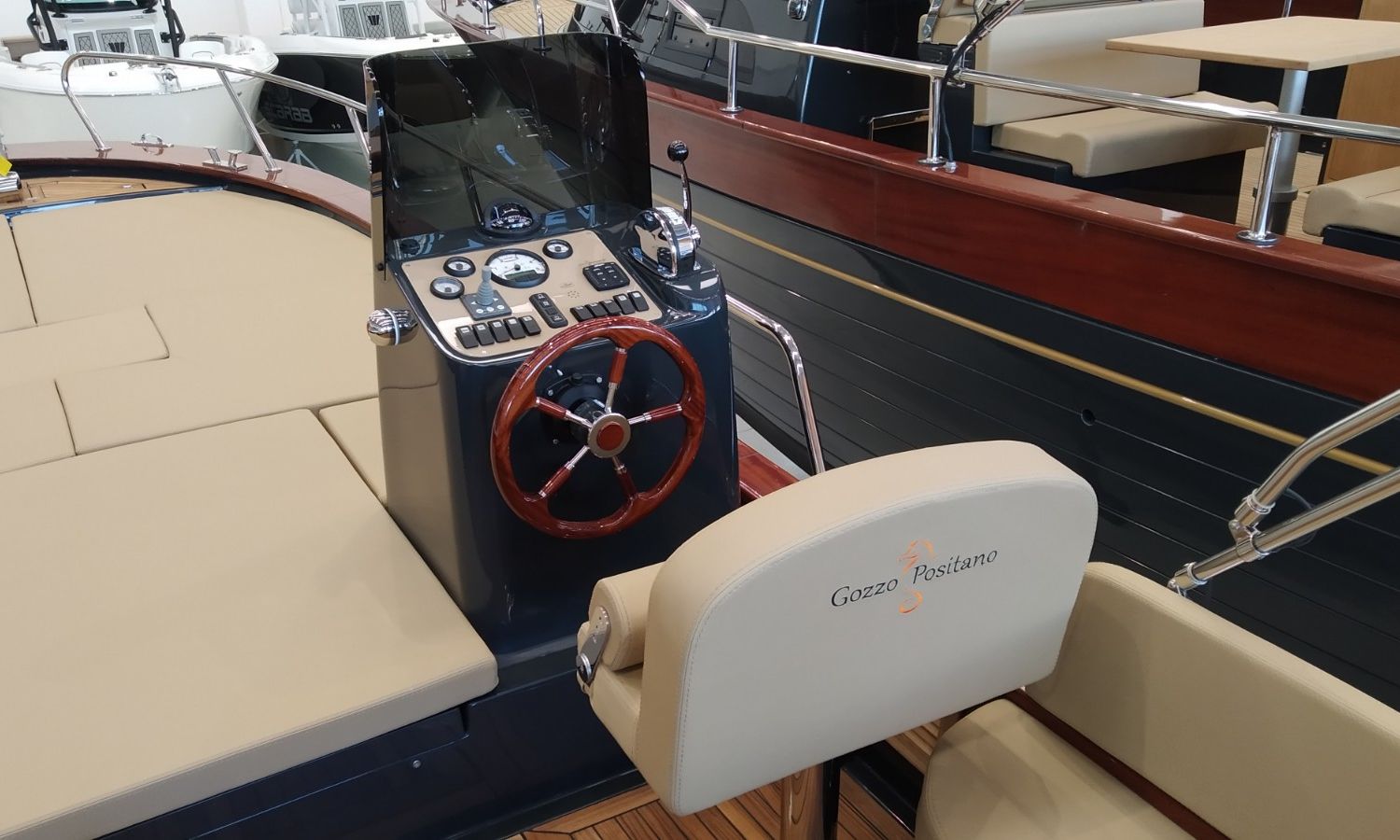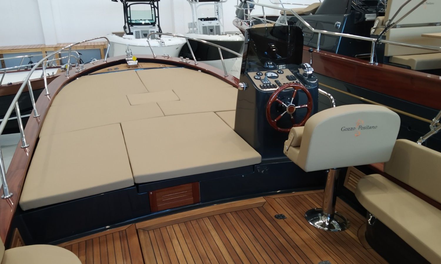 Bateau en fabrication. Livraison Février 2026. Banque de photos, couleurs et équipement peuvent ne correspondre pas exactement à l'unité offerte. Modèle Positano 27 du chantier naval napolitain Gozzo Positano de 8,22 mètres de longueur totale. Bateau avec grande plate-forme de bain et cabine.AST-Nº 02