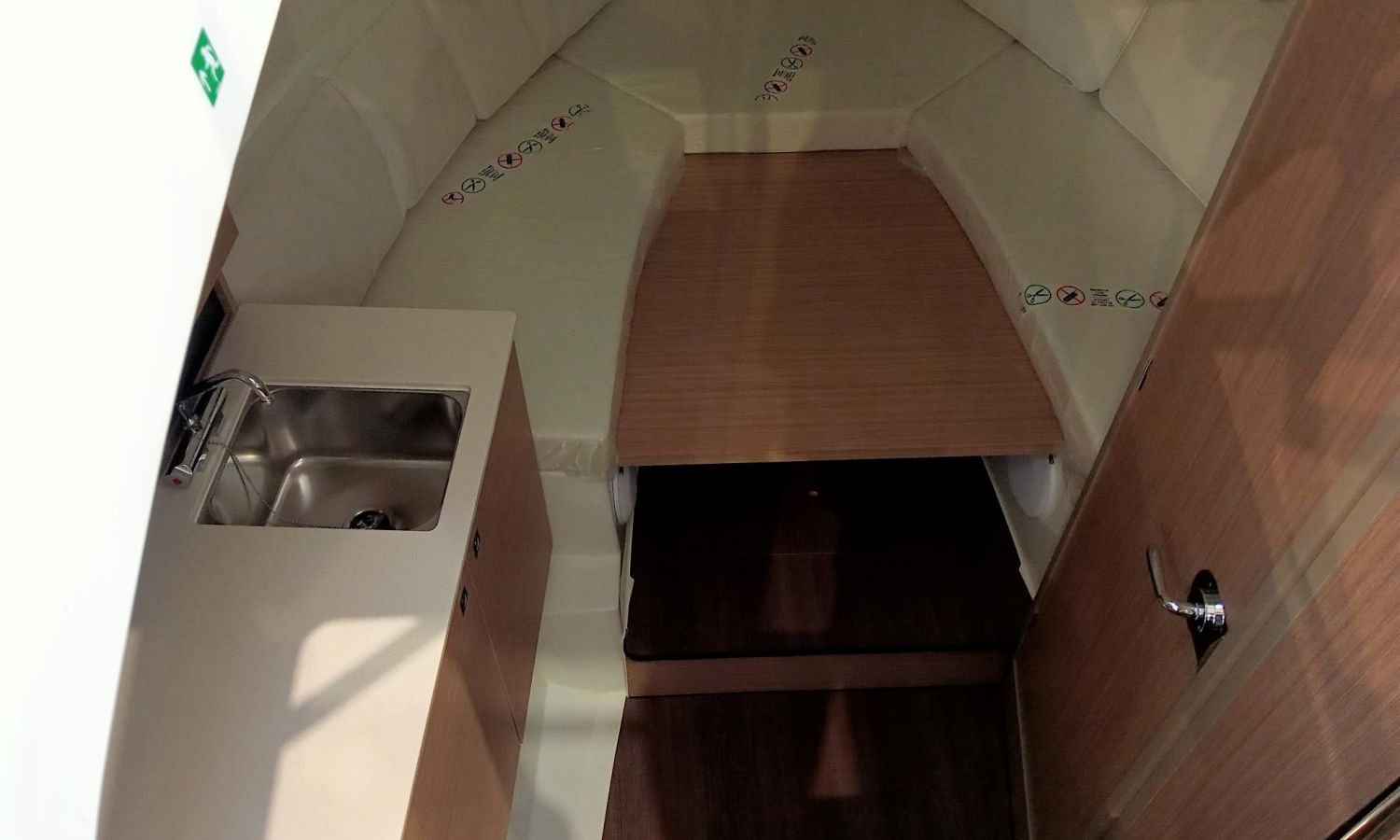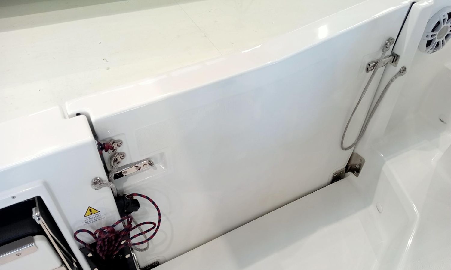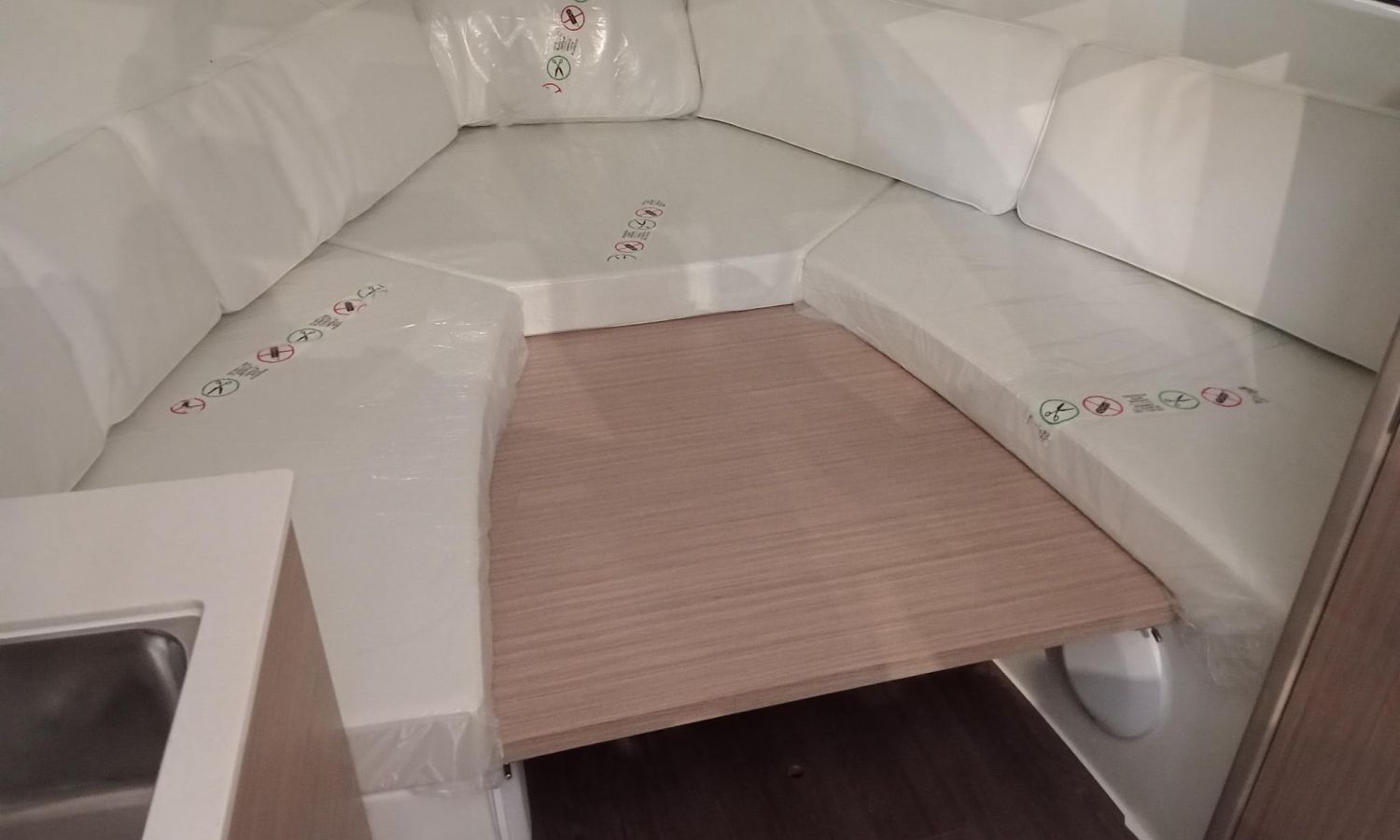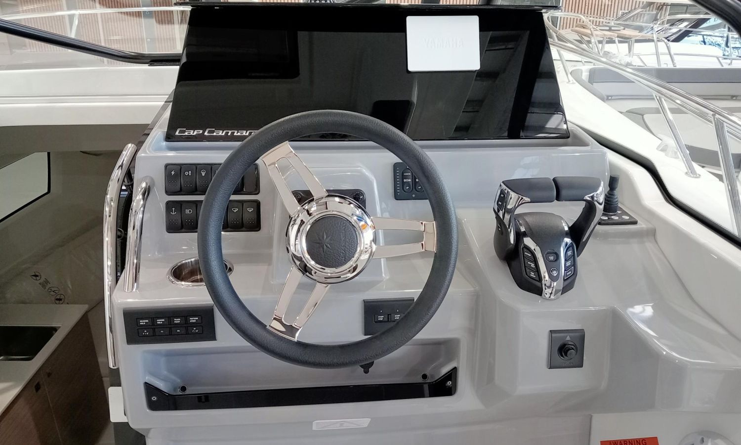 Niveau d’équipement Premiere - Pack Confort - Pack Audio Premium pour bateau avec T-Top - Rideaux intérieurs - T-TOP toit en Polyester - Kit d’amarrage - Kit de mouillage - Propulseur d’étrave - Plates-formes de bain en Polyester - Panneau en T-Top à ouverture manuelle - Banc latéral rétractable Dossier réglable pour bain de soleil baignoire arrière - Réfrigérateur dans la baignoire et le stockage sur Leaning Post - Réchaud à gaz dans la cuisine de la baignoire - Tapisserie de bain avant avec sièges Meridian - - Pompe électrique laver l’eau de mer couverte - Panneau de douche + couvercle de toilette - Coussins de baignoire Silvertex ICE Diamante carbone - Tapisserie salon/Cabine PVC Marlin Pure White - Pre-Rigging moteurs Yamaha 2x200-250 SBW électrique - Transport depuis le chantier naval, Costa-Brava - Installation des moteurs inclus- Peinture Antifouling - Lancement et livraison.Description du bateau