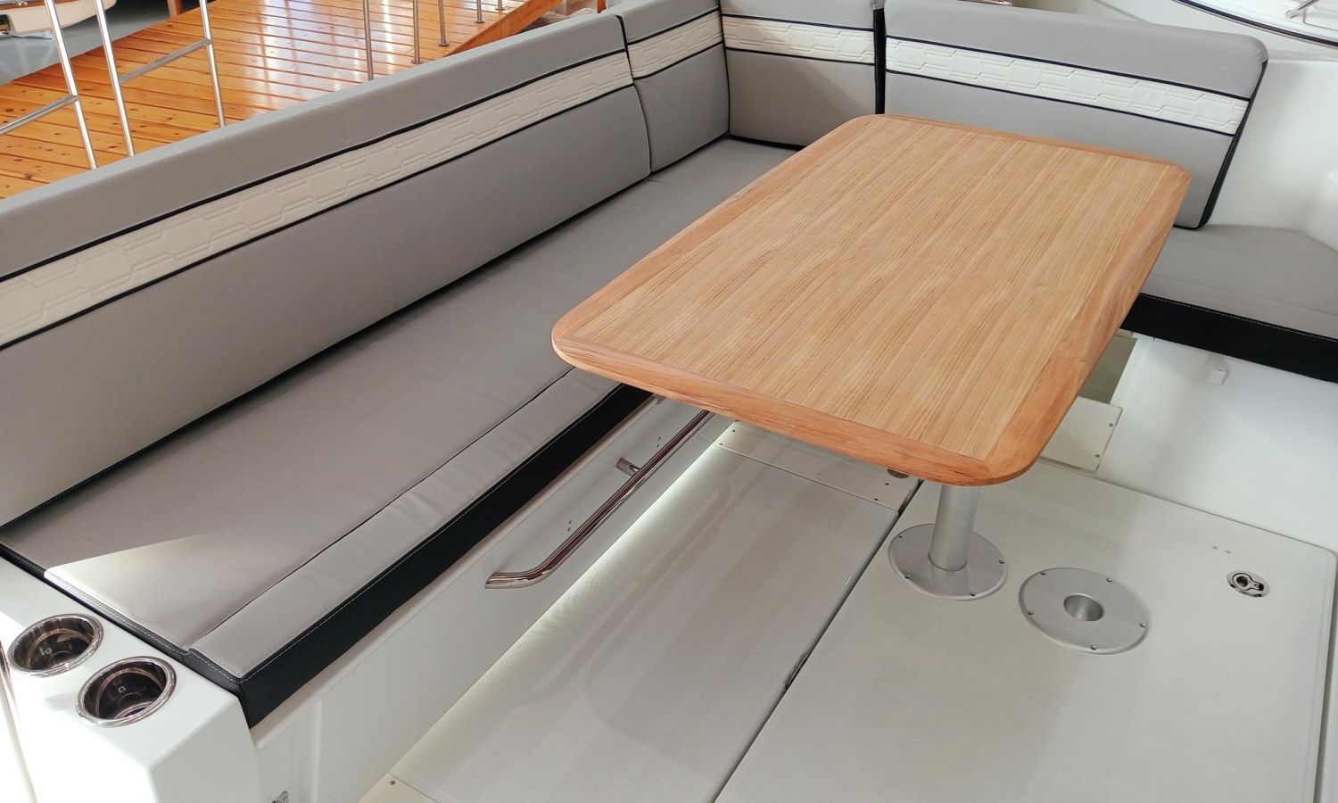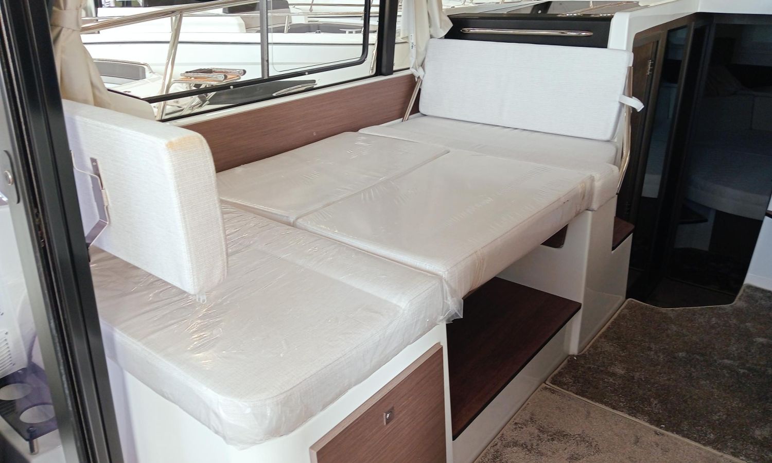 JOYSTICK - NIVEAU D’EQUIPEMENT PREMIERE - PACK CONFORT - PACK AUDIO FUSION RA210 - TAPISSERIE SALON JUMBO SILVER - PARASOL DE BAIN GARMIN AMÉLIORÉ - PACK ELECTRONIQUE GARMIN Map 1223 - RADIO VHF GARMIN - KIT D’AMARRE - KIT DE FONDEO - HELICE DE PROA ÉCHELLE DE PROUE AVEC PLATE-FORME EN BOIS - BAIN DE SOLEIL À L’AVANT AVEC DOSSIERS RÉGLABLES - VOLETS AUTOMATIQUES ZIPWAKE - TABLE DE BAIGNOIRE EN TECK - COMPARTIMENT FRIGORIFICO D’ARRIMAGE 3 CABINE - MATELAS POUR LA TROISIÈME CABINE - COMPLÉMENT LIT DOUBLE DANS SALON - ARMOIRE DE RANGEMENT HAUTE DANS LA CUISINE - ARMOIRE DE RANGEMENT HAUTE À PORT DANS LE SALON - ARMOIRES DE RANGEMENT HAUTES DANS LA CABINE AVANT - FOUR MICRO-ONDES - ENSEMBLE DE MOQUETTE DÉMONTABLES EN TIMONÈRE ET CABINES - 2 PORTE-CANNE - CLAXON - ESCALIER POUR COFFRE AU SOL BAIGNOIRE - PORTE-BAGAGES EN TOIT TIMONERA - TRANSPORT DU CHANTIER NAVAL-COSTABRAVA - PRÉPARATION, LANCEMENT ET LIVRAISON AVEC ESSAIS EN MER - PEINTURE ANTIFOULING.Description du bateau