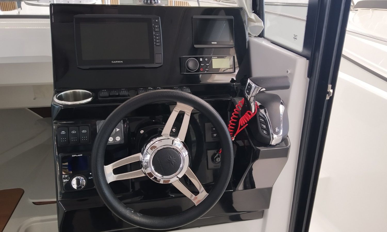 PACK AUDIO FUSION RA70N, RIDEAUX INTERIEURS DE TIMONERIE, SUPPLEMENT VERSION AVEC COMPARTIMENT FERME ET HUBLOT OUVRANT, CASQUETTE DE COCKPIT ARRIERE COULISSANTE, RADIO VHF, PACK ELECTRONIQUE GARMIN, MERRY FISHER 795 MARLIN VERSION 2 PORTES (TRIBORD +ARRIERE), SUPPLEMENT VERSION AVEC PORTE LATERALE A BABORD, FINITION PREMIERE, PROPULSEUR ETRAVE, GUINDEAU ELECTRIQUE, PRISE DE QUAI 220V + PRE-INSTALLATION CHARGEUR, COMMANDE DE GUINDEAU AU POSTE PILOTAGE, 2 PROJECTEURS DE COCKPIT ARRIERE, CLAXON, POMPE EAU DE MER DE LAVAGE DE PONT ET POUR LE VIVIER, COUSSINS DE BAIN DE SOLEIL AVANT, TABLE DE COCKPIT, PLATEFORMES DE BAIN, BANQUETTE LATERALE REPLIABLE LUXE A BABORD + COUSSIN, COUSSINS DE COCKPIT AVANT, BANQUETTE LATÉRALE REPLIABLE LUXE A TRIBORD + COUSSIN, EAU DOUCE SOUS PRESSION + RESERVOIR + DOUCHETTE DE COCKPIT, FLAPS AUTOMATIQUES ZIPWAKE, GALERIE DE RANGEMENT SUR LE TOIT, REFRIGERATEUR 40L, BANQUETTE ARRIERE DE COKPIT AMOVIBLE AVEC COUSSIN, COUSSINS ET DOSSIER DE BANQUETTE DE COCKPIT ARRIERE, TABLE DE COCKPIT AVANT, WC MARIN+RESERVOIR A EAUX NOIRES, TABLE DE CARRE ESCAMOTABLE, COUCHAGE CABINE POUR VERSION AVEC COMPARTIMENT FERME, KIT PECHE, PRE-MONTAGE YAMAHA 150-250 DBW ELECTRIQUE, TRANSPORT DEPUIS LE CHANTIER NAVAL - COSTA-BRAVA, INSTALLATION MOTEUR COMPRIS.