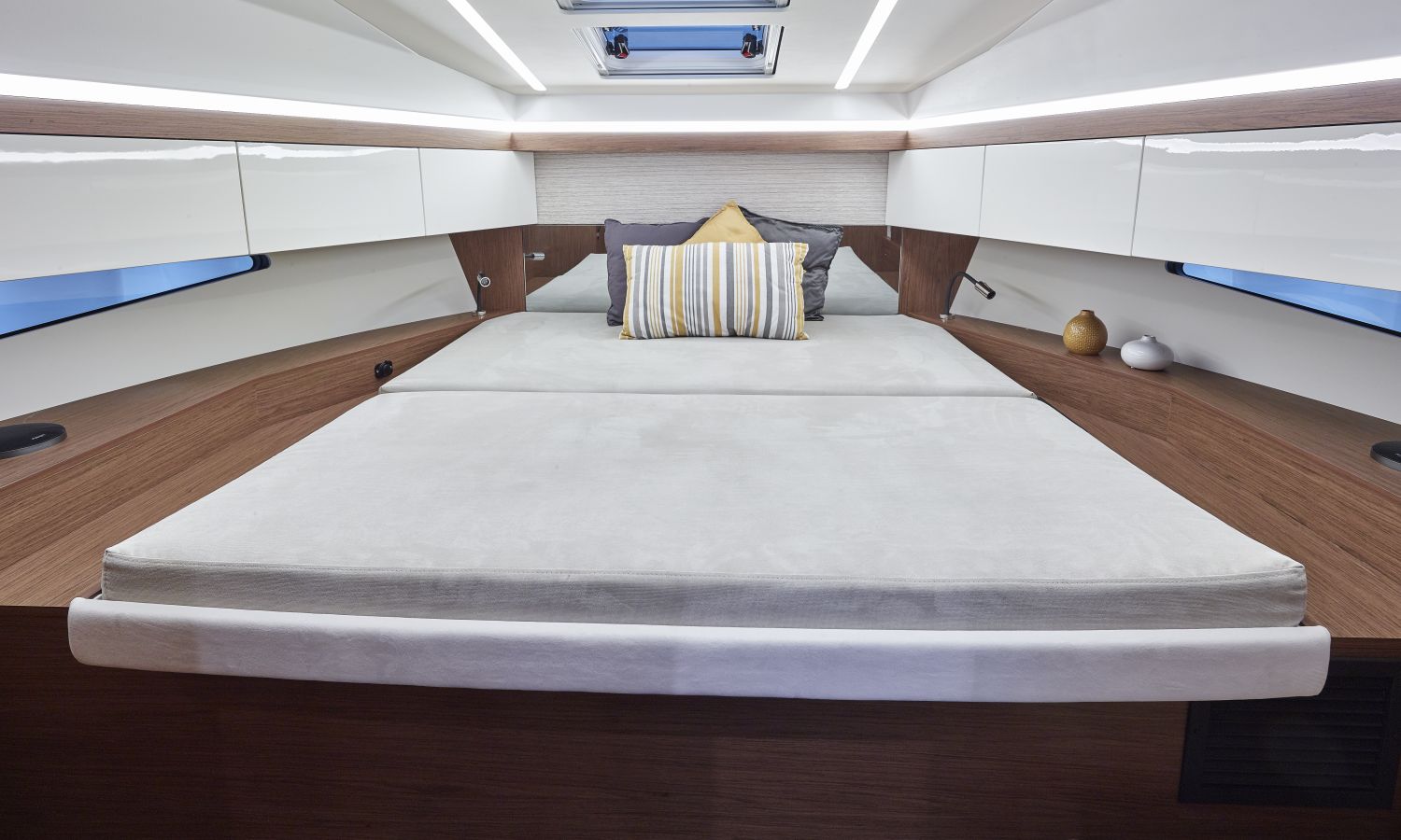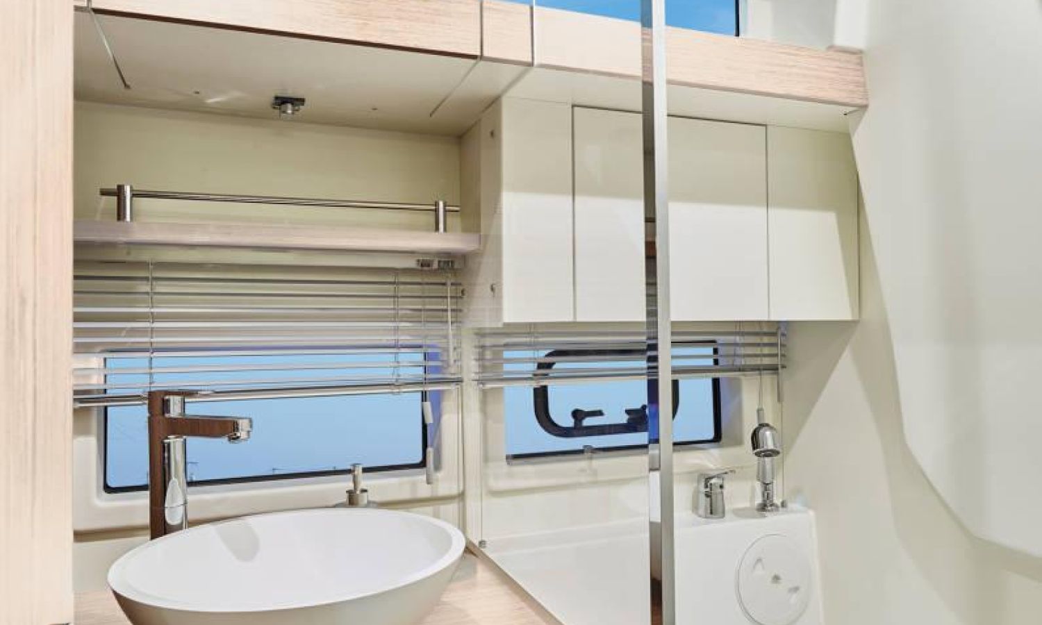 Côté design, l’aménagement intérieur répond aux exigences du concept NC avec un ensemble exempt de marches. La vie à bord est fluide et agréable.