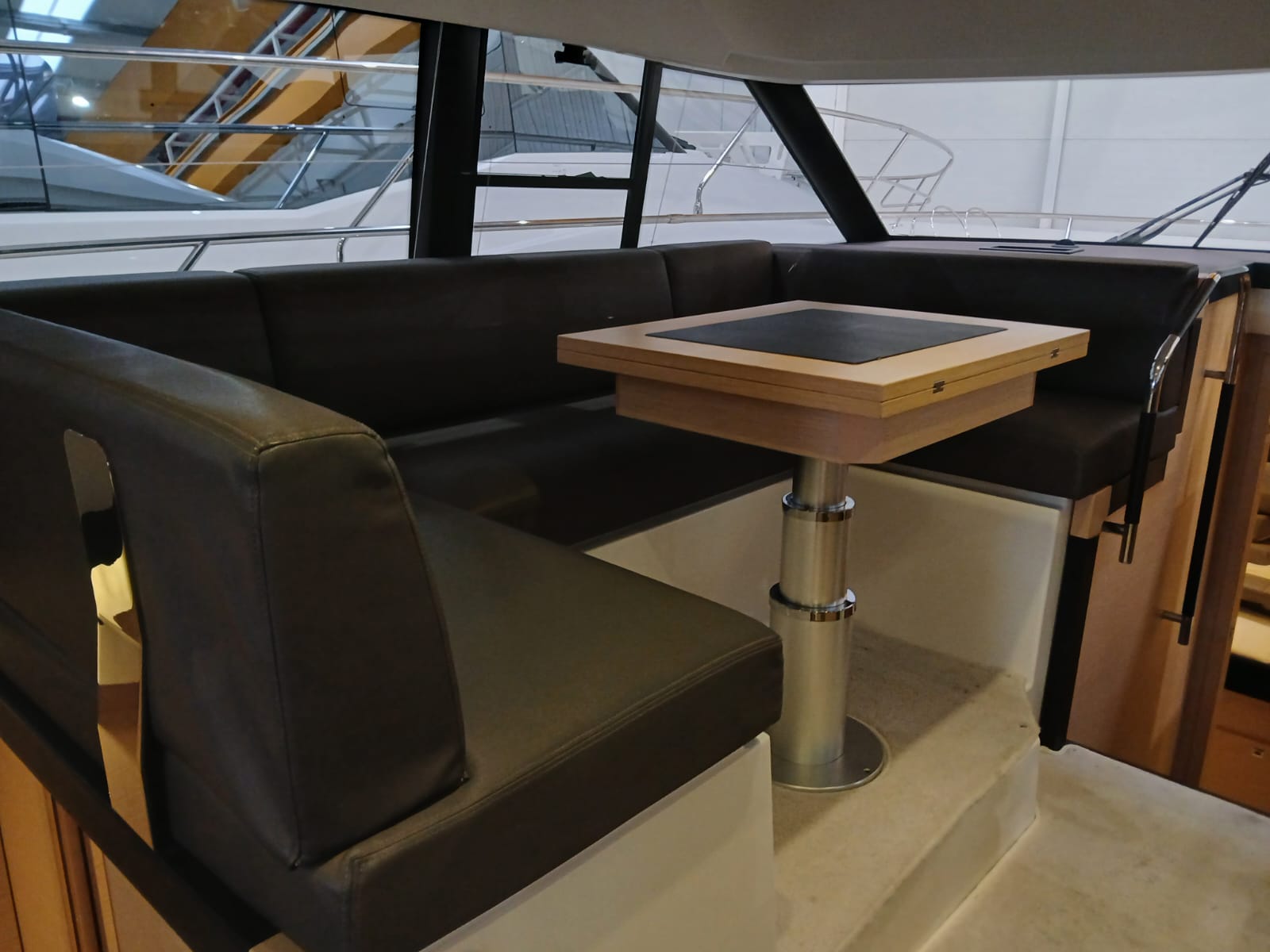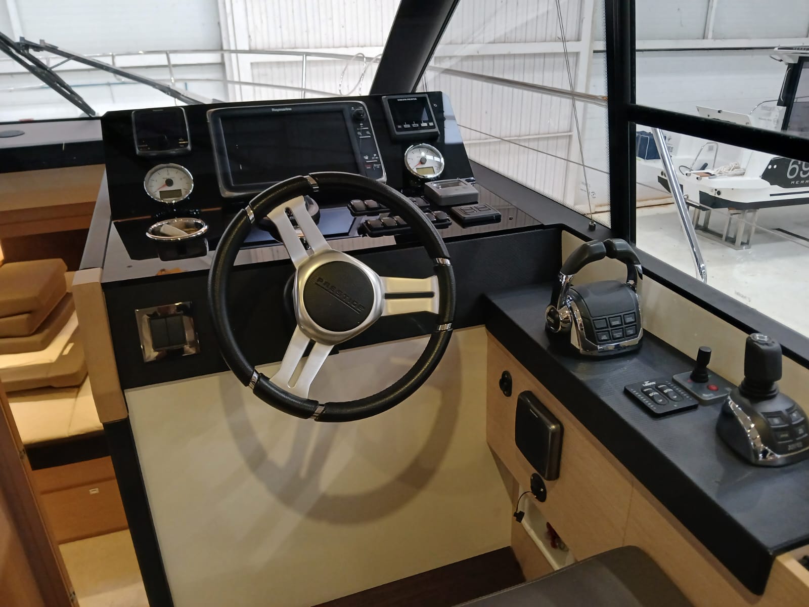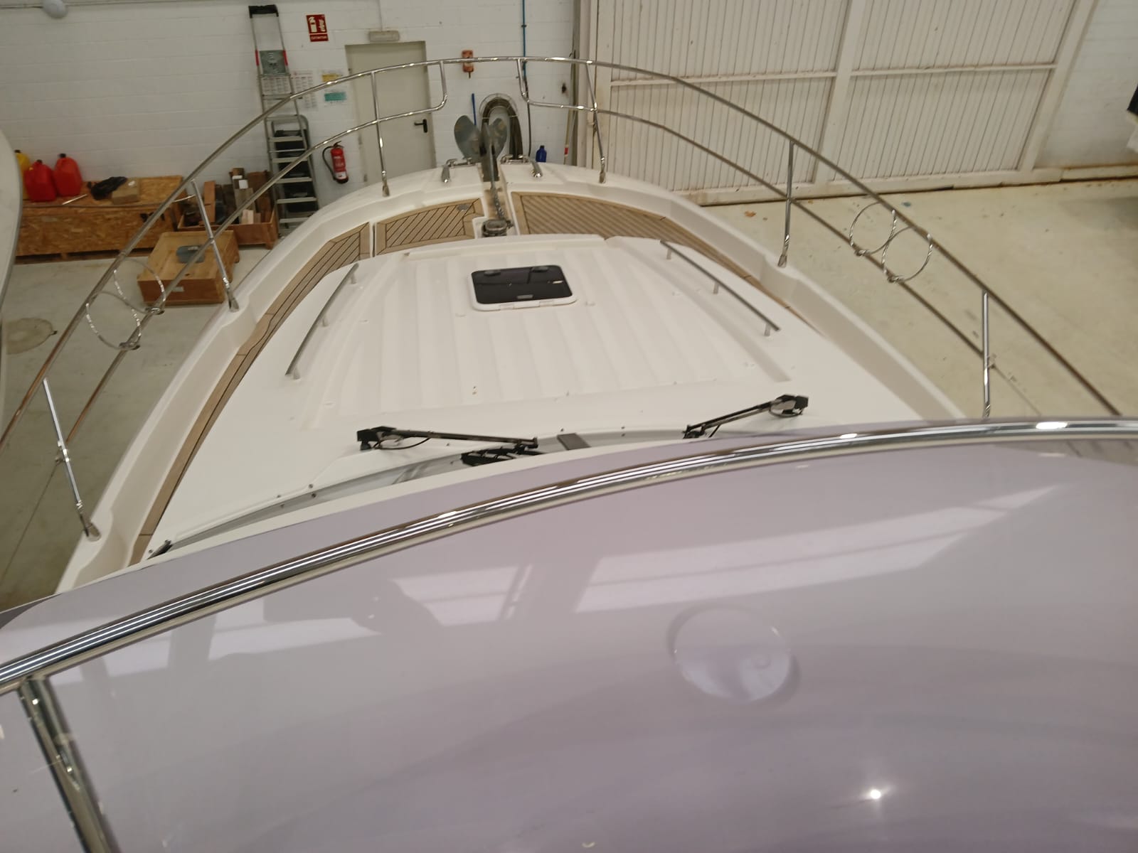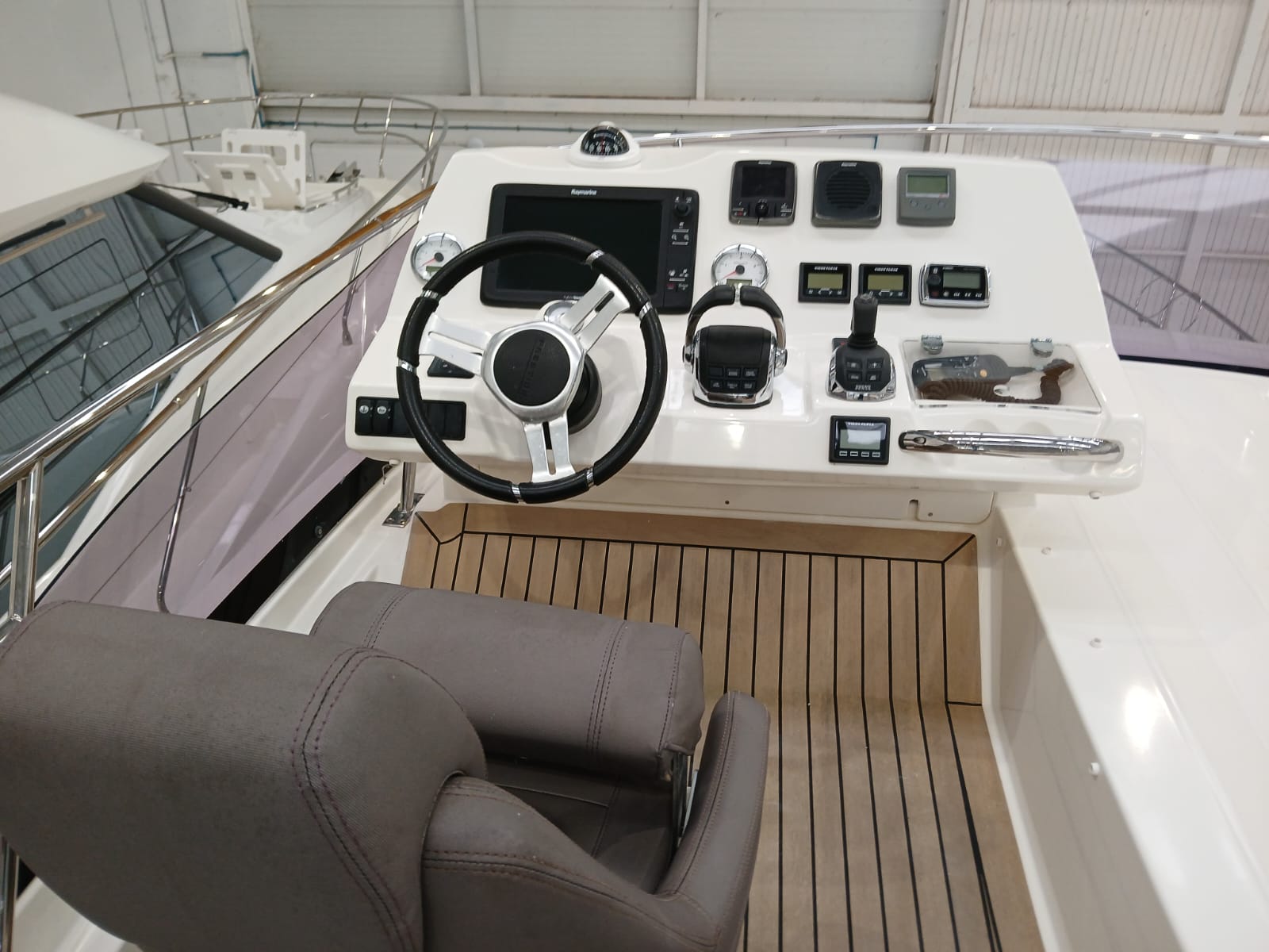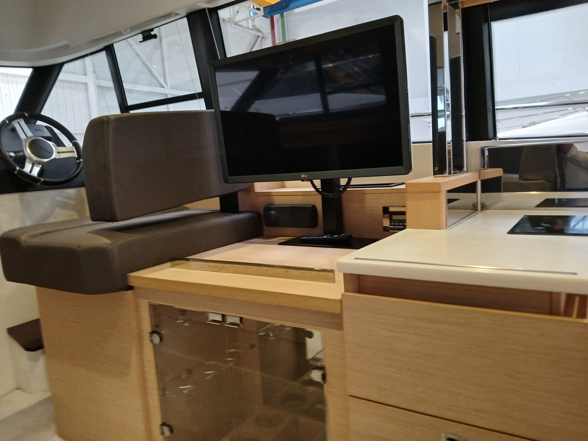 Plateforme hydraulique - Passerelle hydraulique - Commandes électroniques - Climatisation - Gps/Plotter/Sonda - Fly - Vhf - Joystick - Générateur - Radar - Bimini fly et taud électronique dans le cockpit - Tableà manger avec piètement électrique - Réfrigérateur - Plaque à induction - Flexitec sur les côtés et le fly - Solárium à l'avant - Antifouling.Description du bateau