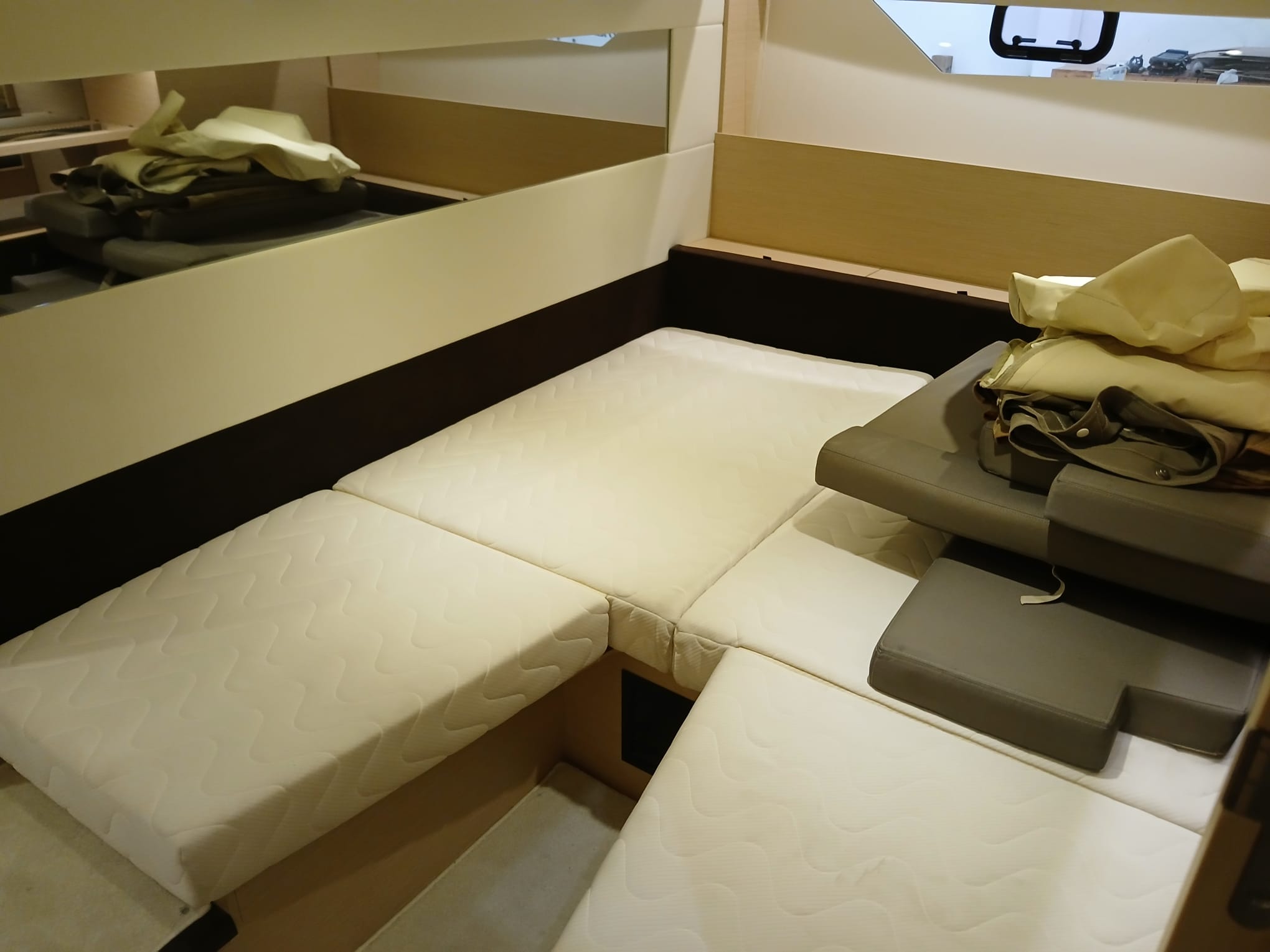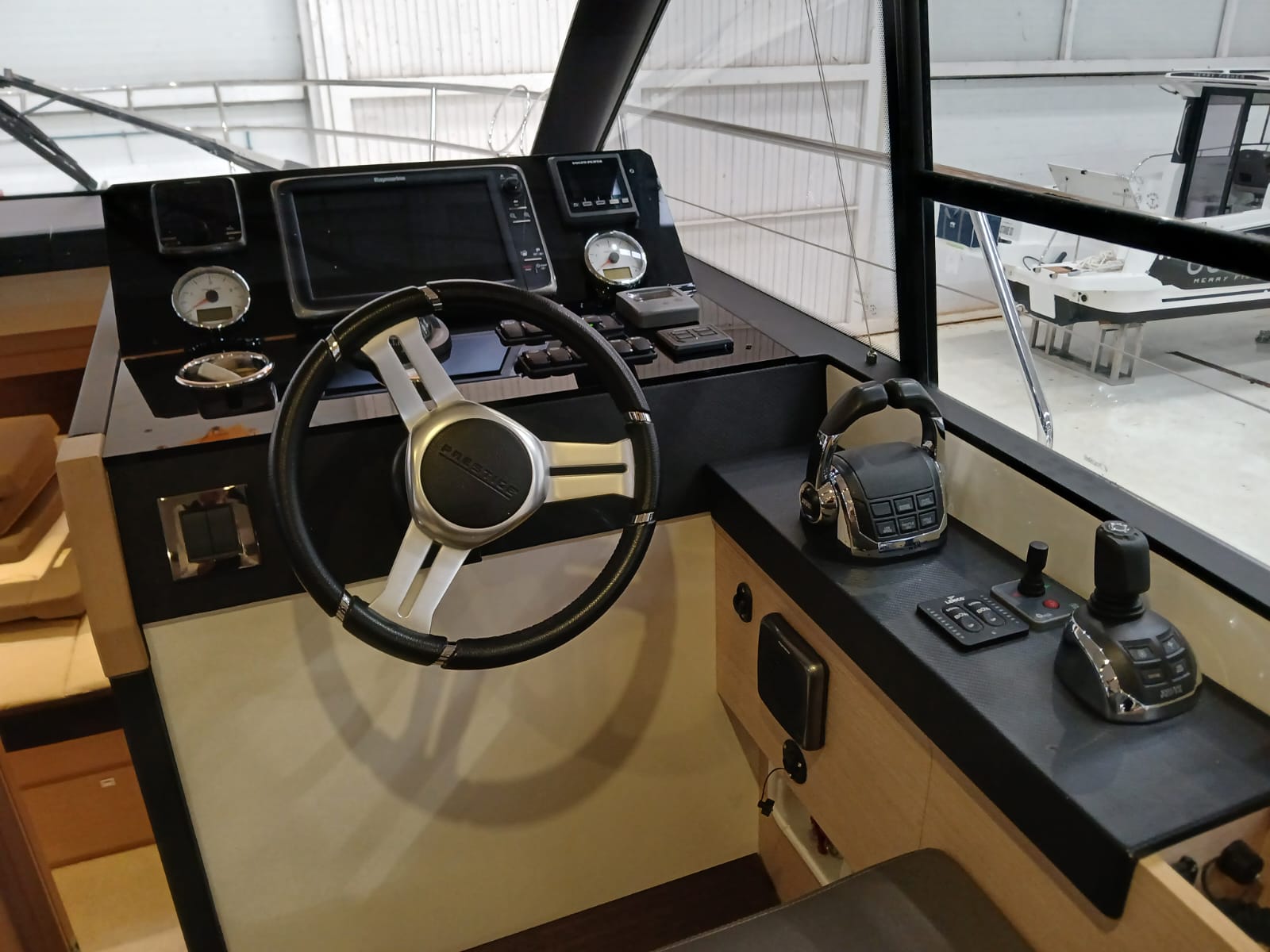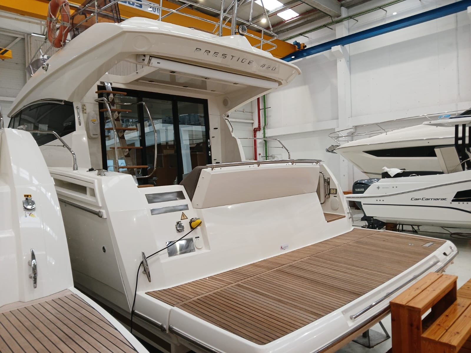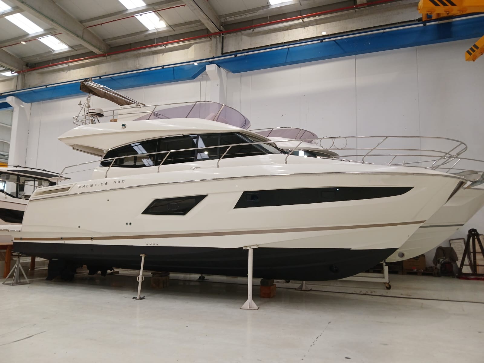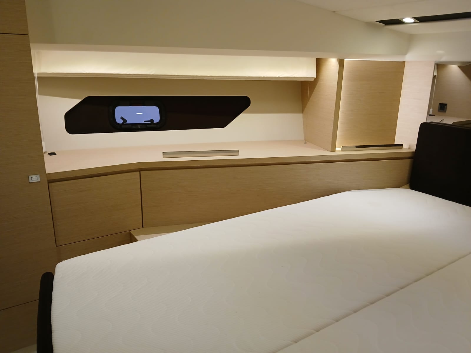 Plateforme hydraulique - Passerelle hydraulique - Commandes électroniques - Climatisation - Gps/Plotter/Sonda - Fly - Vhf - Joystick - Générateur - Radar - Bimini fly et taud électronique dans le cockpit - Tableà manger avec piètement électrique - Réfrigérateur - Plaque à induction - Flexitec sur les côtés et le fly - Solárium à l'avant - Antifouling.Description du bateau