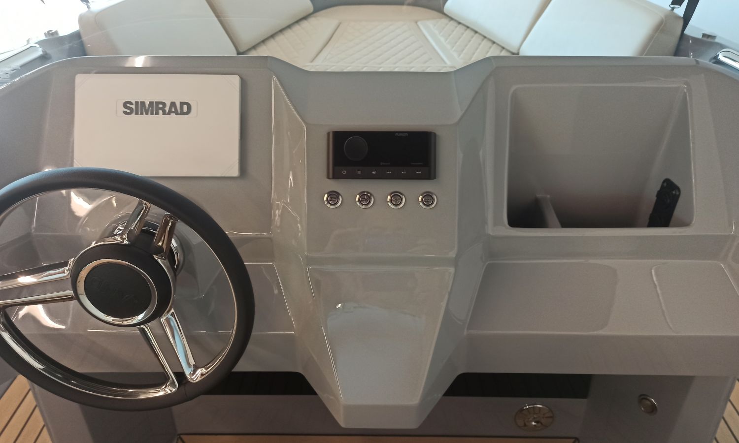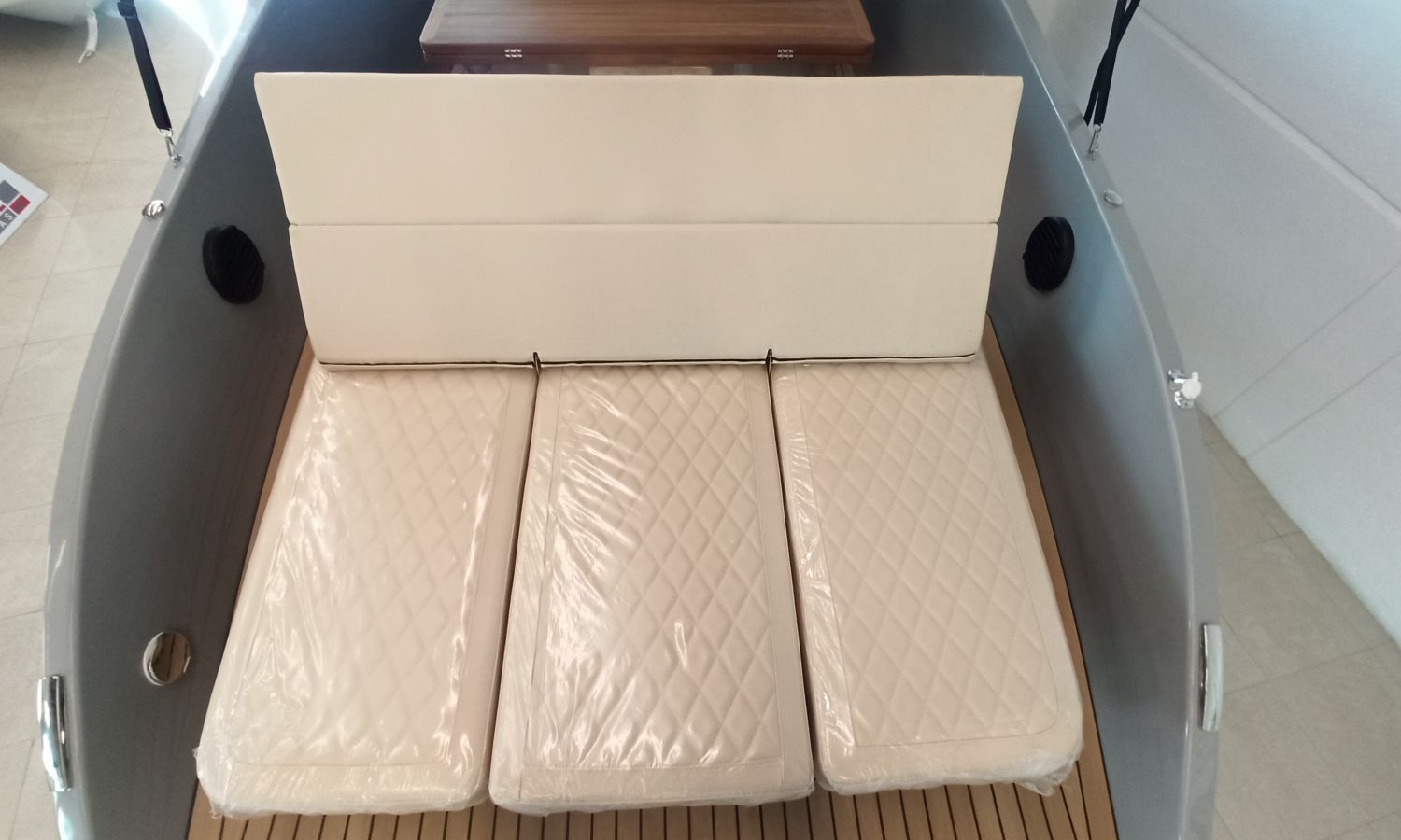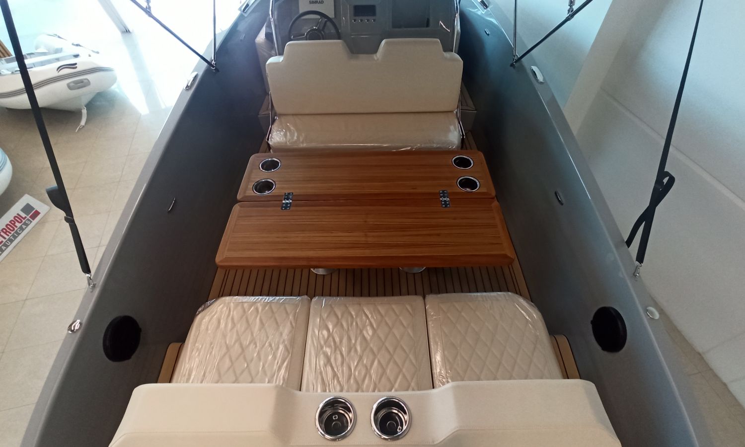 COULEUR DE LA COQUE TITANE - SELLERIE EN CREME DE DIAMANT - CROCHET POUR SPORTS NAUTIQUES - 4 PORTE-GOBELETS EN INOX SUR LA TABLE DE COCKPIT - DOUCHE DE POUPE - PARE-BATTAGES + SUPPORTS - ÉCLAIRAGE LED DANS LE COCKPIT - ÉCHELLE DE BAIN PREMIUM - BAIN DE SOLEIL AVANT - CHARGEUR DE BATTERIE - BAIN DE SOLEIL DANS LE COCKPIT - FRIGO DANS L'ÉCOUTILLE AVANT - BIMINI TOP -FLAPS AUTOMATIQUES- TRANSPORT PAR LE CHANTIER - COSTA-BRAVA - INSTALLATION DU MOTEUR + PRE-RIGGING.Description du bateau