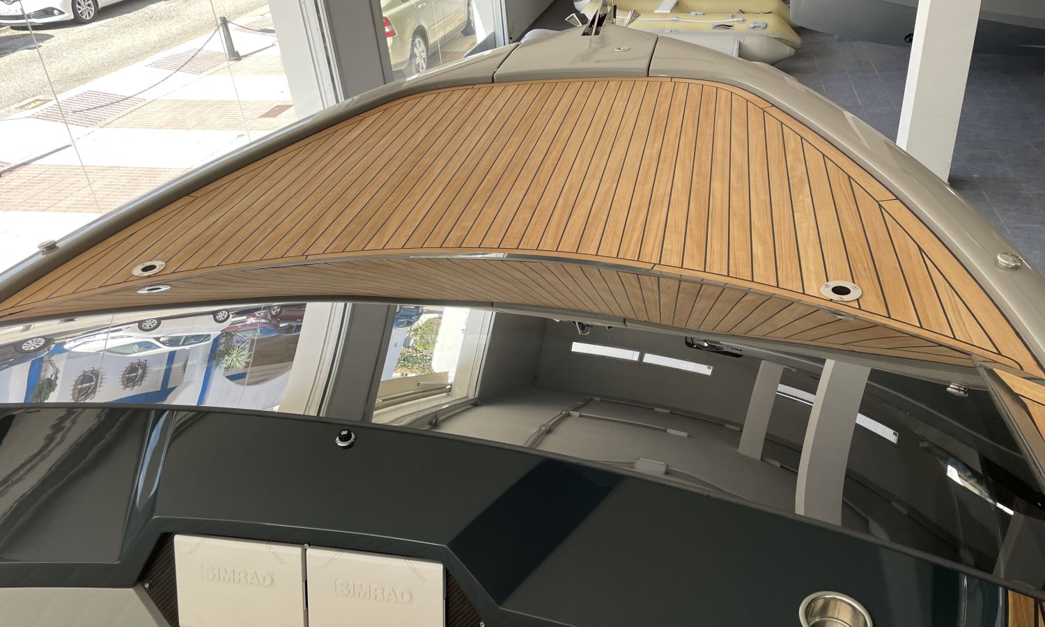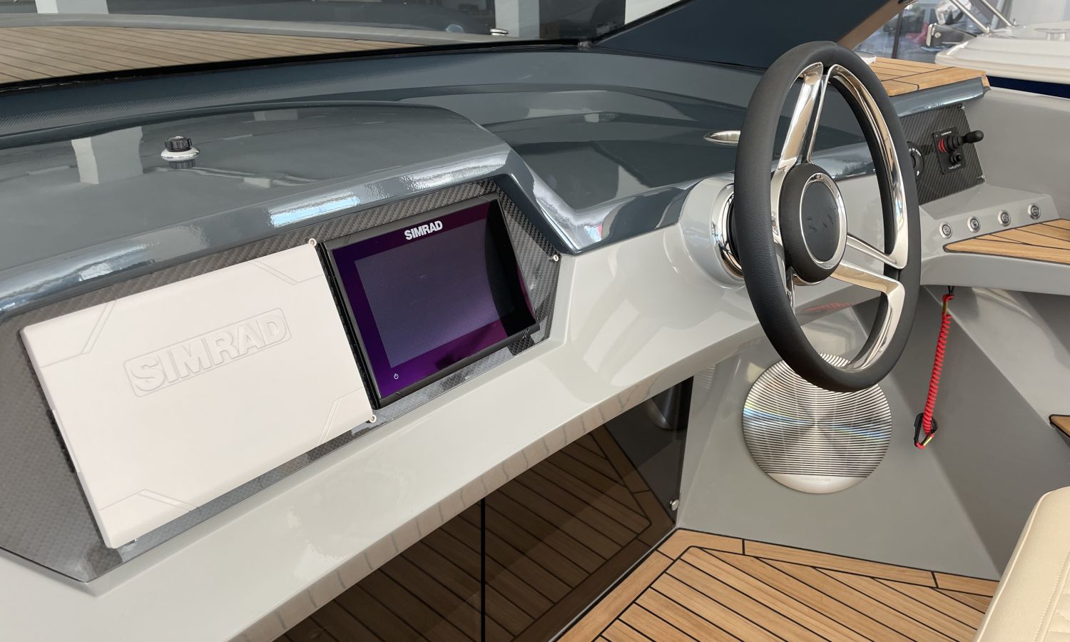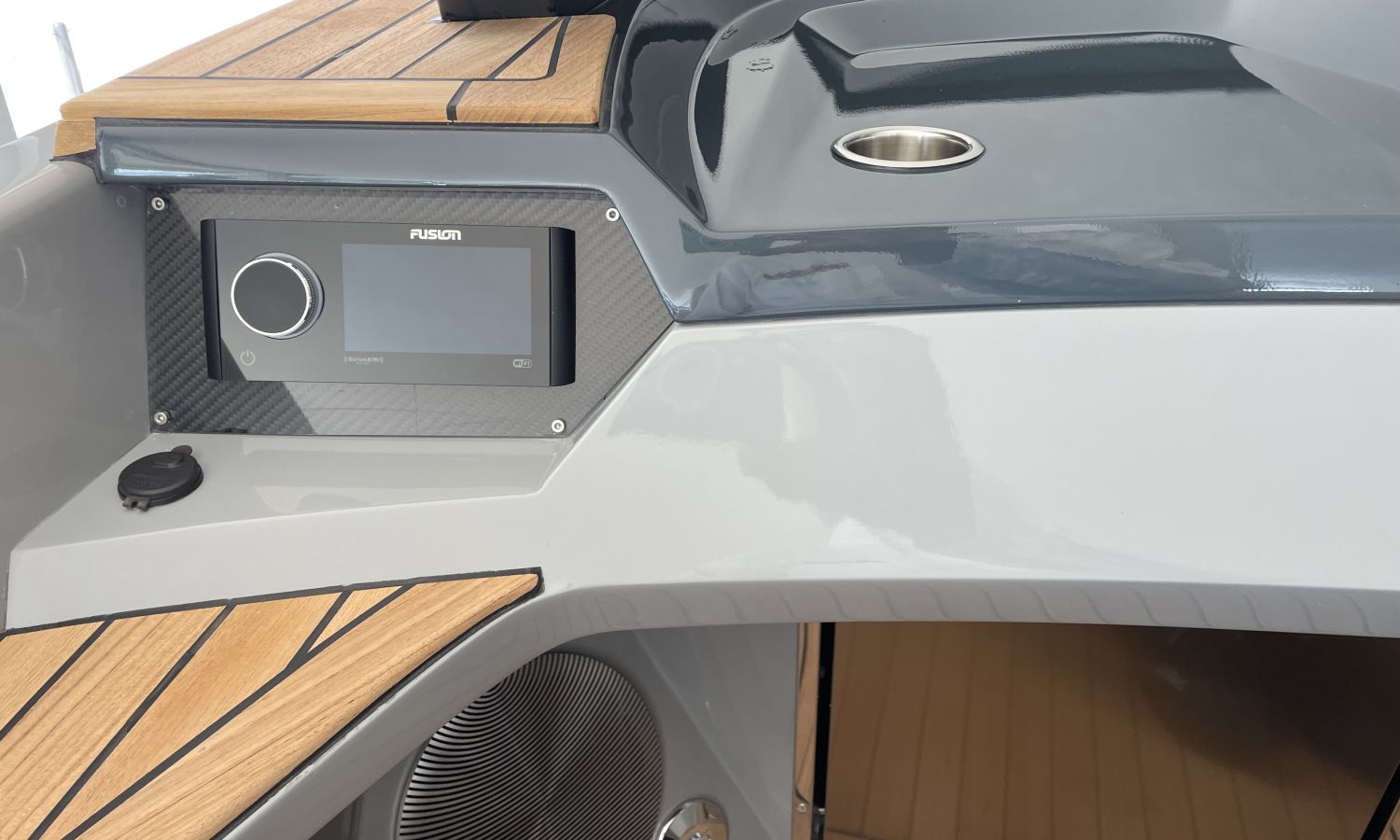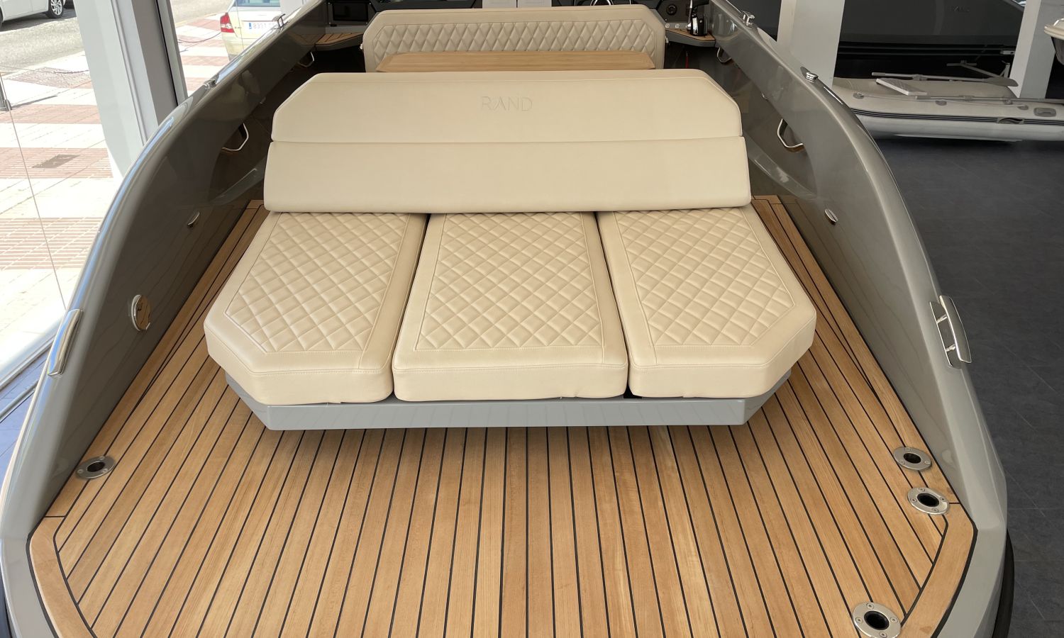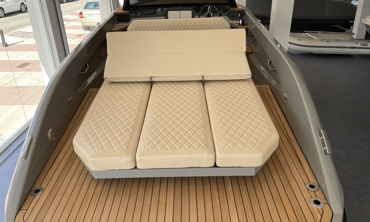 COQUE COULEUR GRISE SKI - SELLERIE EN CUIR DIAMANT - GUINDEAU ELECTRIQUE + KIT DE MOUILLAGE - DEUX ECRANS RAYMARINE 7" SUR LE TABLEAU DE BORD AVEC SYSTEME DOMOTIQUE - CROCHET A SKI - PORTE-VERRE - DOUCHE DE COCKPIT - FEUX A LEDS DANS LE COCKPIT - DEFENSES - ECHELLE DE BAIN PREMIUM - REFRIGERATEUR LUXE - TAUD DE MOUILLAGE - CAPTEUR DE PROFONDEUR - CHARGEUR DE BATTERIE – AUVENT DE TYPE HAIMA - PROPULSEUR D'ETRAVE - SYSTEME AUDIO B&O - EXTINCTEUR AUTOMATIQUE - TECK SUR PONT ET PLATEFORME DE BAIN - TRANSPORT CHANTIER NAVAL-COSTA-BRAVA.Description du bateau