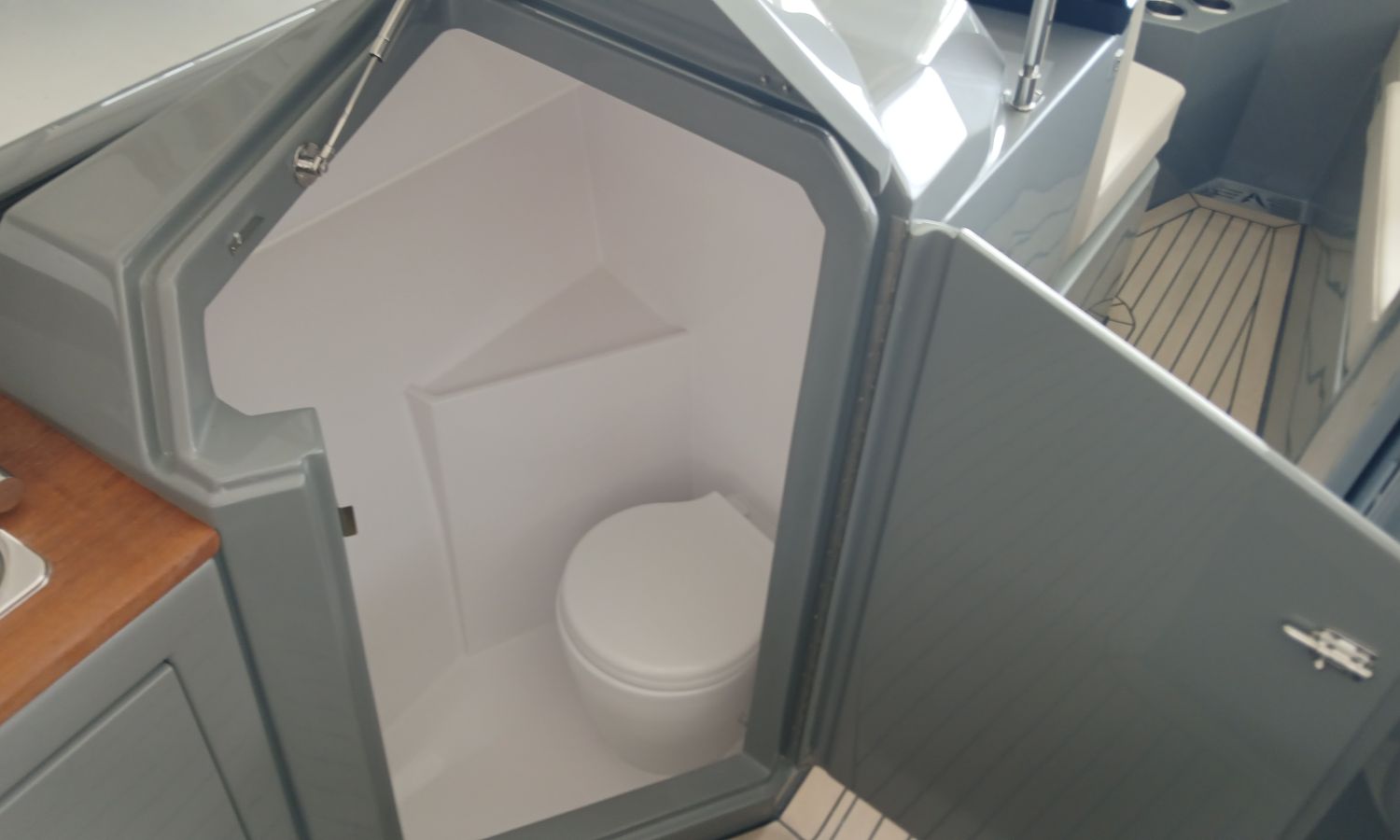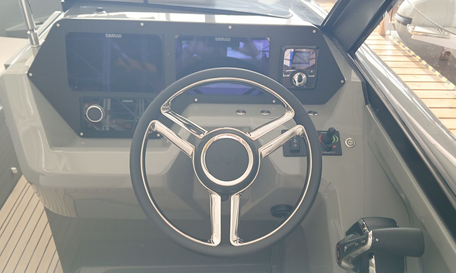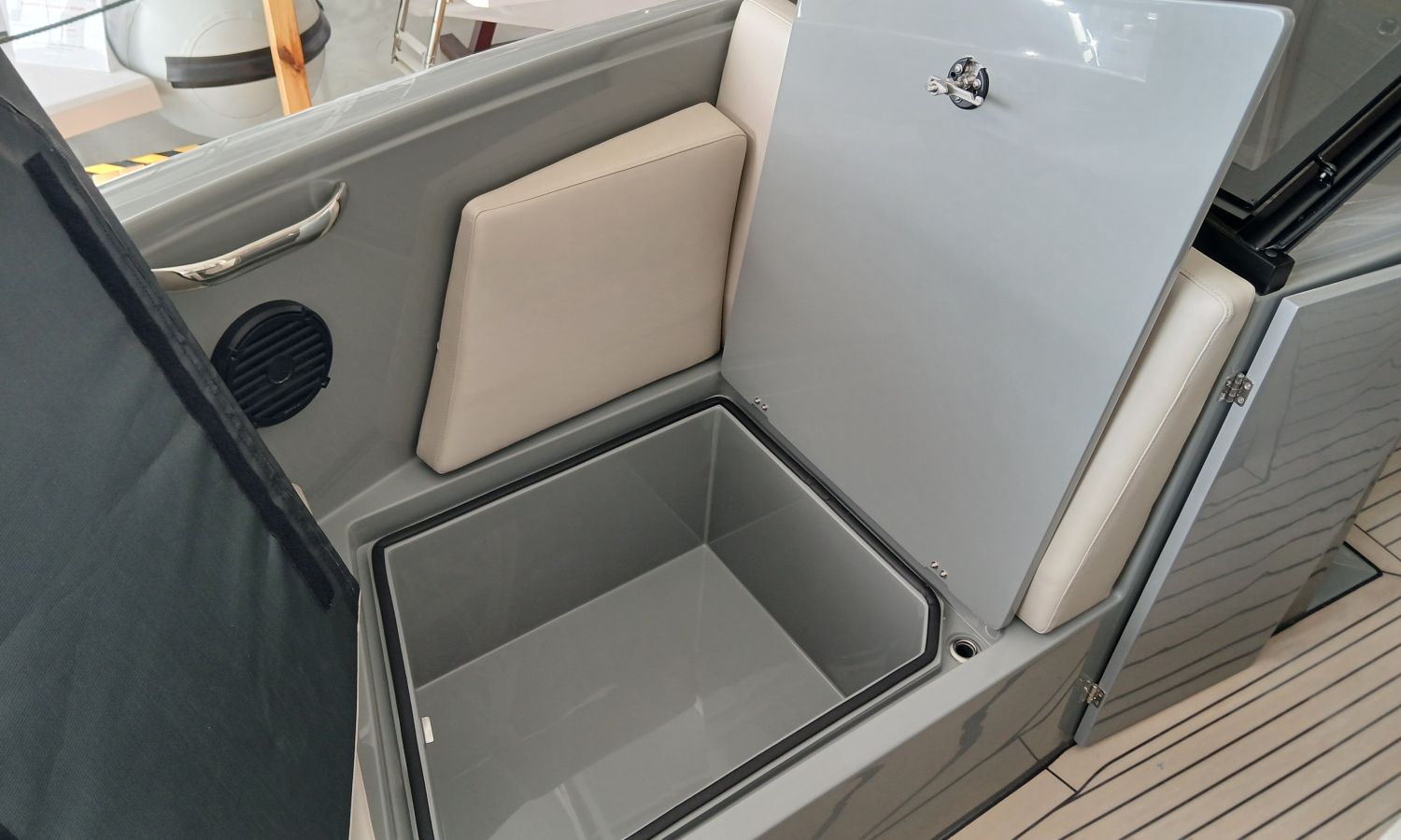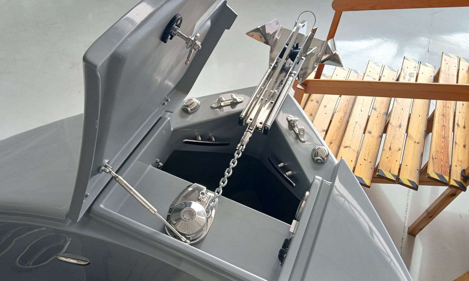 Coque couleur Grey Ski (RAL 7037) - Tapisserie Silvertex Macadamia - Pare-battage gris - Meuble de cuisine à bâbord avec évier et robinet - Système d'eau sous pression avec douche dans la baignoire et WC marin électrique avec réservoir d'eaux usées - Hélice d'étrave - Équipement audio système Premium B&O - Pack éclairage LED premium - Guindeau électrique + kit d'ancrage - Défenses + supports - Douche à l'arrière - Réfrigérateur de luxe - Échelle de bain Premium - Volets automatiques Zipwake - Bâche d'ancrage - Prise de quai + chargeur de batteries - Transport chantier naval-Costa Brava - Peinture antifouling - Préparation, montage, mise à l'eau et livraison avec essais en mer inclus.Description du bateau