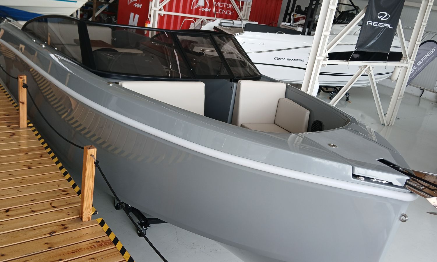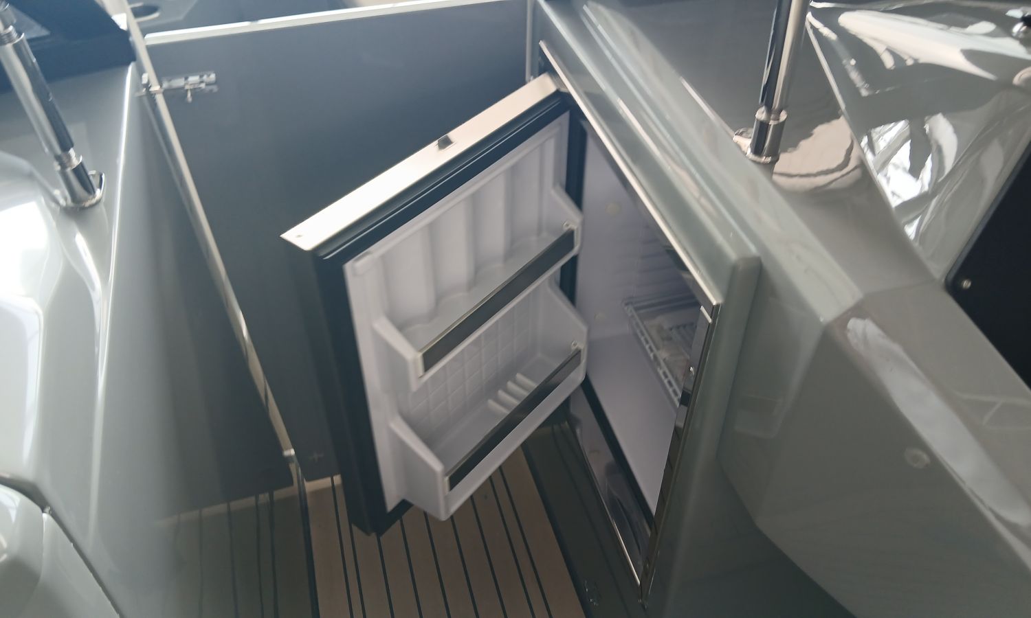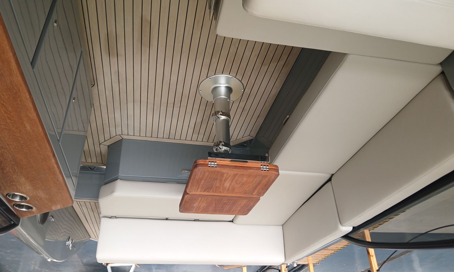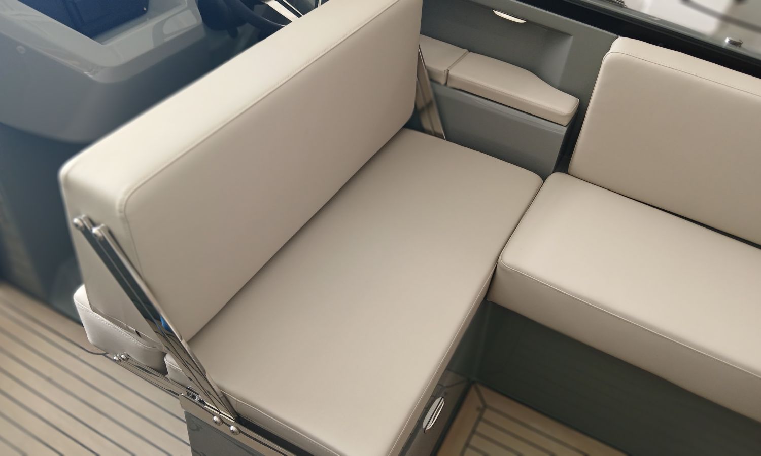 Coque couleur Grey Ski (RAL 7037) - Tapisserie Silvertex Macadamia - Pare-battage gris - Meuble de cuisine à bâbord avec évier et robinet - Système d'eau sous pression avec douche dans la baignoire et WC marin électrique avec réservoir d'eaux usées - Hélice d'étrave - Équipement audio système Premium B&O - Pack éclairage LED premium - Guindeau électrique + kit d'ancrage - Défenses + supports - Douche à l'arrière - Réfrigérateur de luxe - Échelle de bain Premium - Volets automatiques Zipwake - Bâche d'ancrage - Prise de quai + chargeur de batteries - Transport chantier naval-Costa Brava - Peinture antifouling - Préparation, montage, mise à l'eau et livraison avec essais en mer inclus.Description du bateau