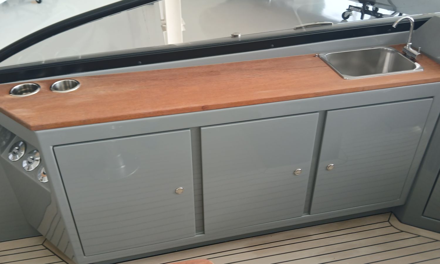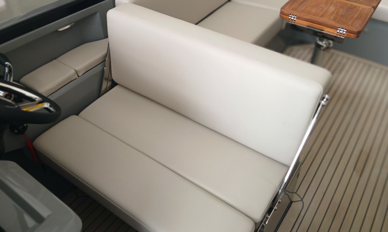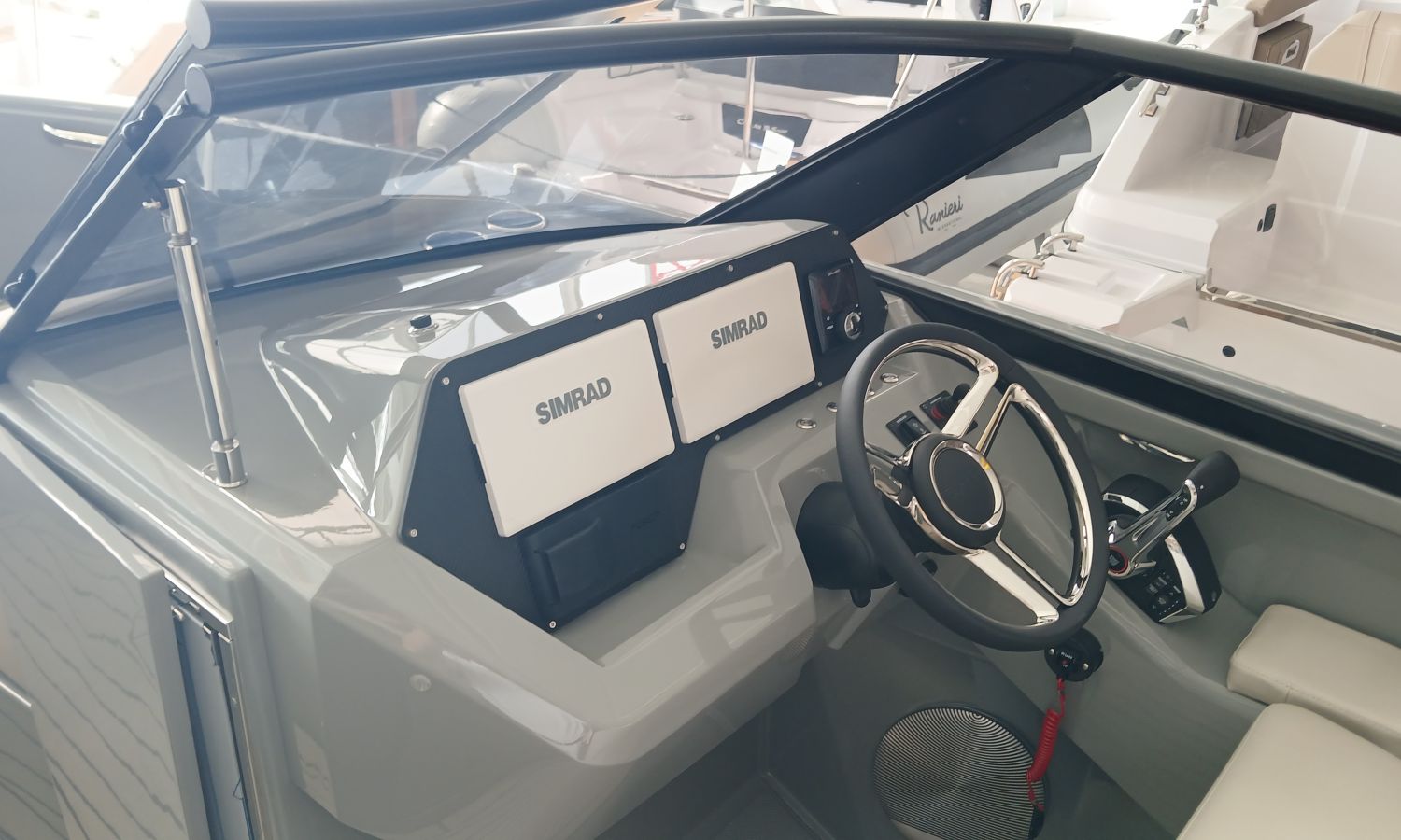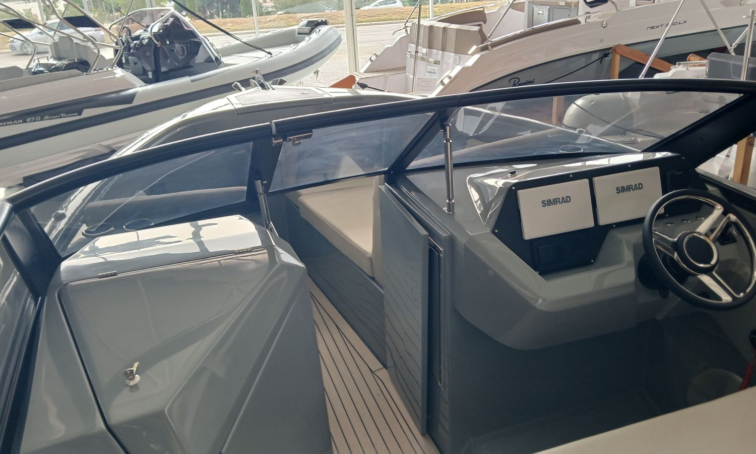 Coque couleur Grey Ski (RAL 7037) - Tapisserie Silvertex Macadamia - Pare-battage gris - Meuble de cuisine à bâbord avec évier et robinet - Système d'eau sous pression avec douche dans la baignoire et WC marin électrique avec réservoir d'eaux usées - Hélice d'étrave - Équipement audio système Premium B&O - Pack éclairage LED premium - Guindeau électrique + kit d'ancrage - Défenses + supports - Douche à l'arrière - Réfrigérateur de luxe - Échelle de bain Premium - Volets automatiques Zipwake - Bâche d'ancrage - Prise de quai + chargeur de batteries - Transport chantier naval-Costa Brava - Peinture antifouling - Préparation, montage, mise à l'eau et livraison avec essais en mer inclus.Description du bateau