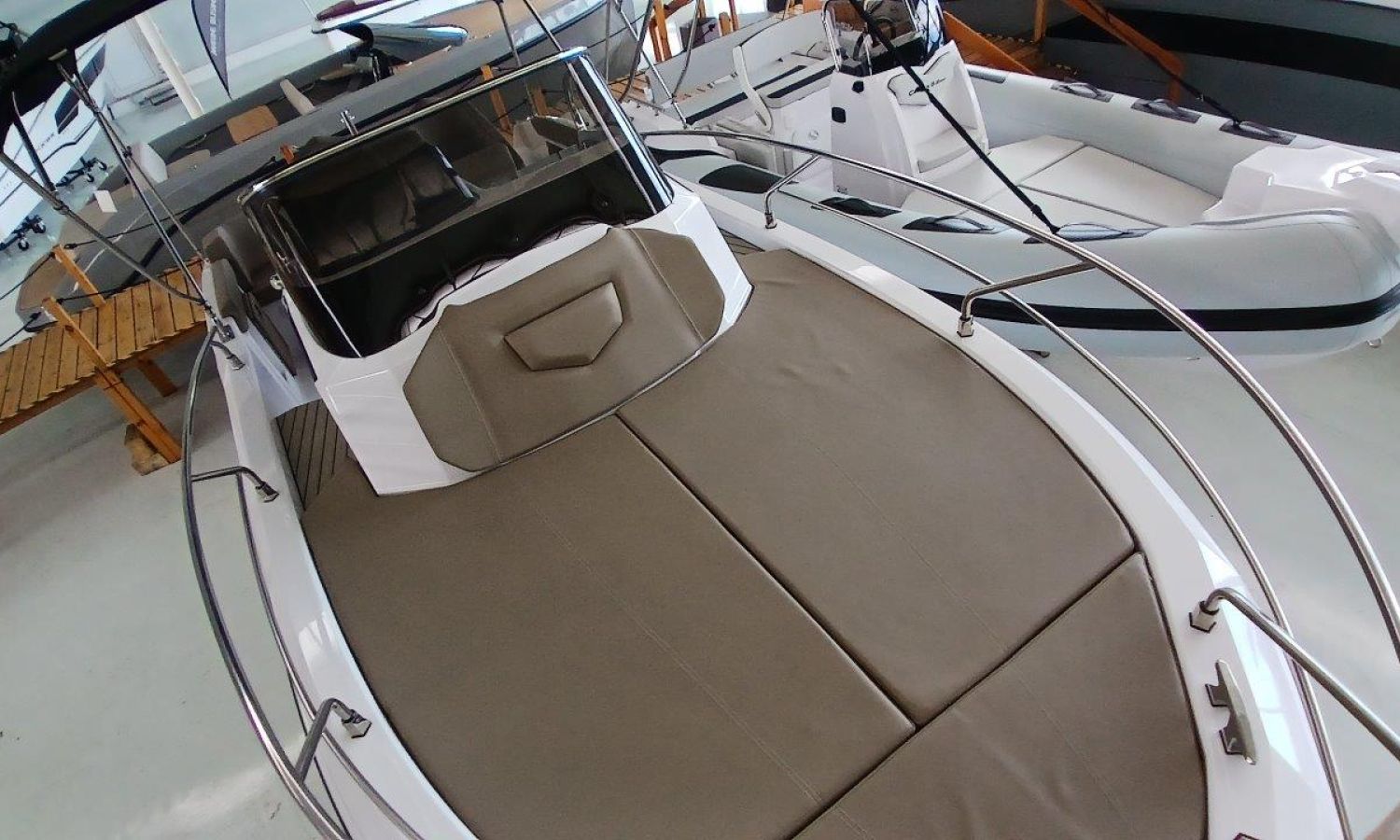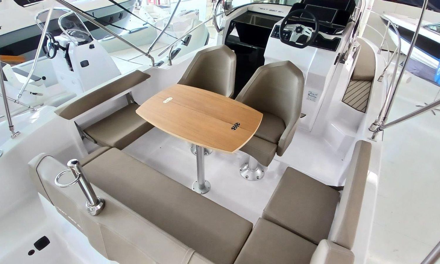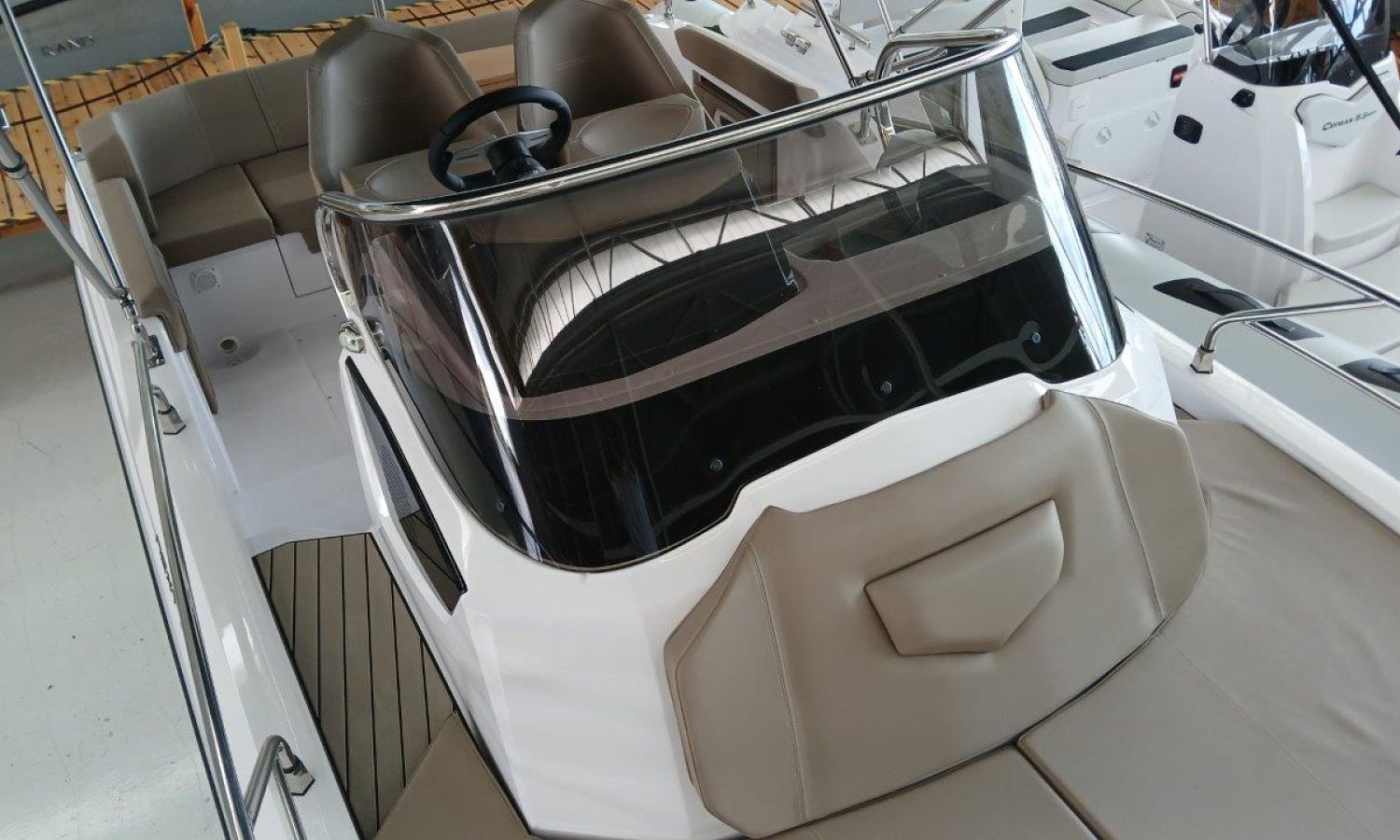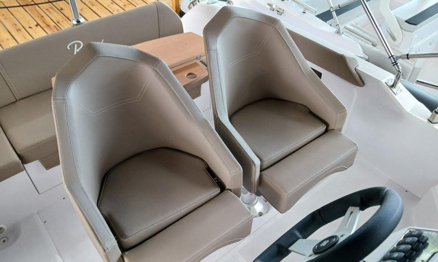 2 Sièges confort S-Line - Installation douche complète - Kit mât ski - Guindeau électrique - Bancs latéraux pliables - Sellerie Luxury - Table à poupe en teck - Taud de mouillage - Taud soleil - Direction hydraulique - WC électrique avec réservoir d'eaux noires - Transport chantier naval à Costa Brava.Description du bateau