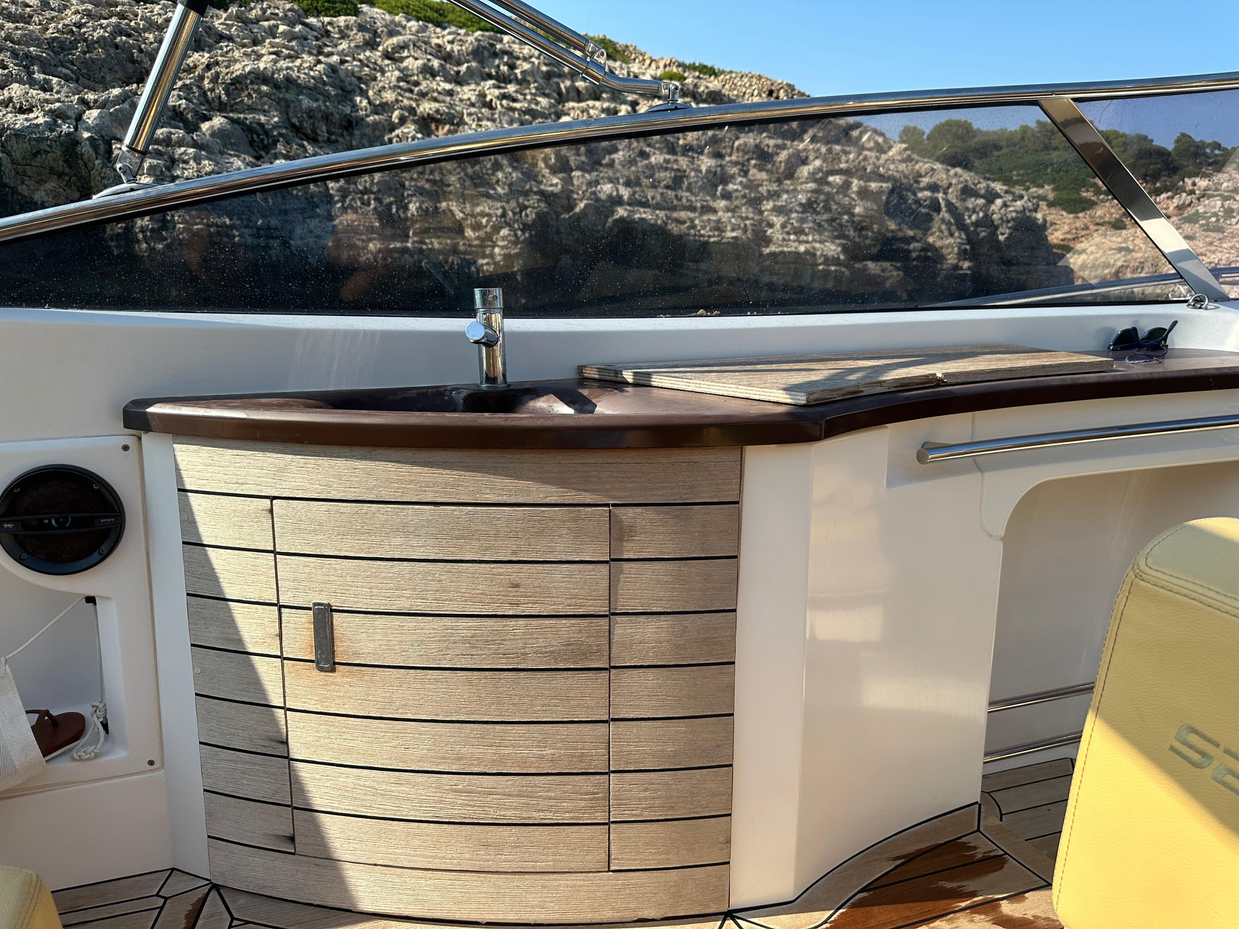 Taud bimini - Guideau électrique - Douche à l'arrière - Solarium arrière - Wc eléctrique - Feux de navegation - Flaps - 2 bateries - Évier - Réfrigerateur - Équipement audio - Gps/Sondeur - Vhf - Antifouling.Description du bateau