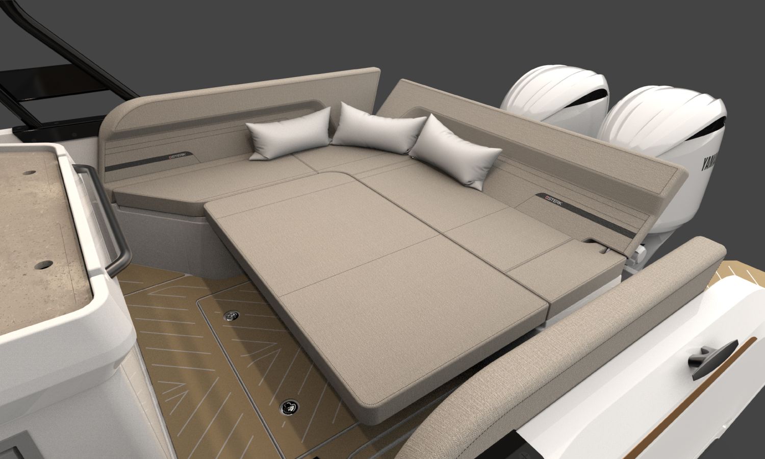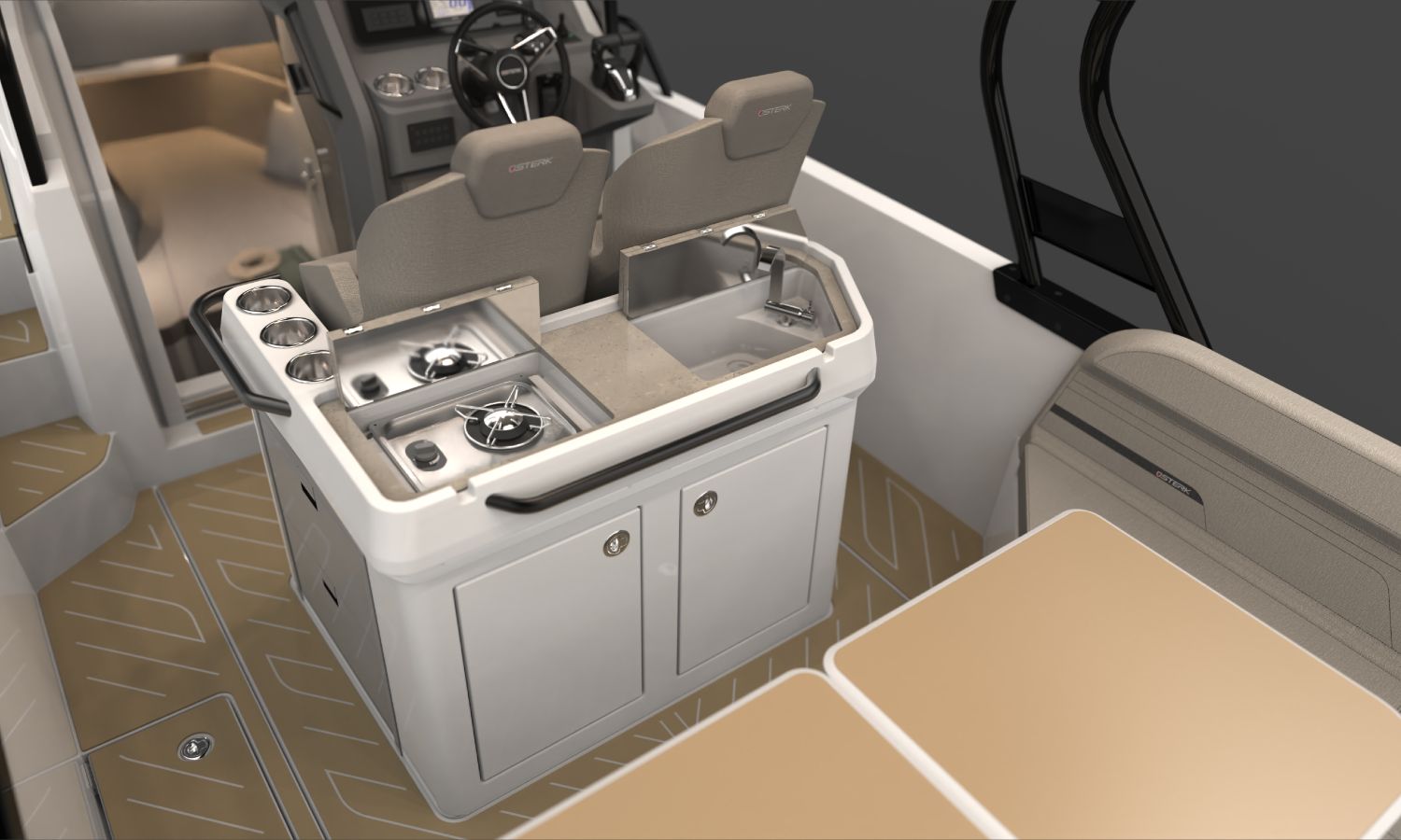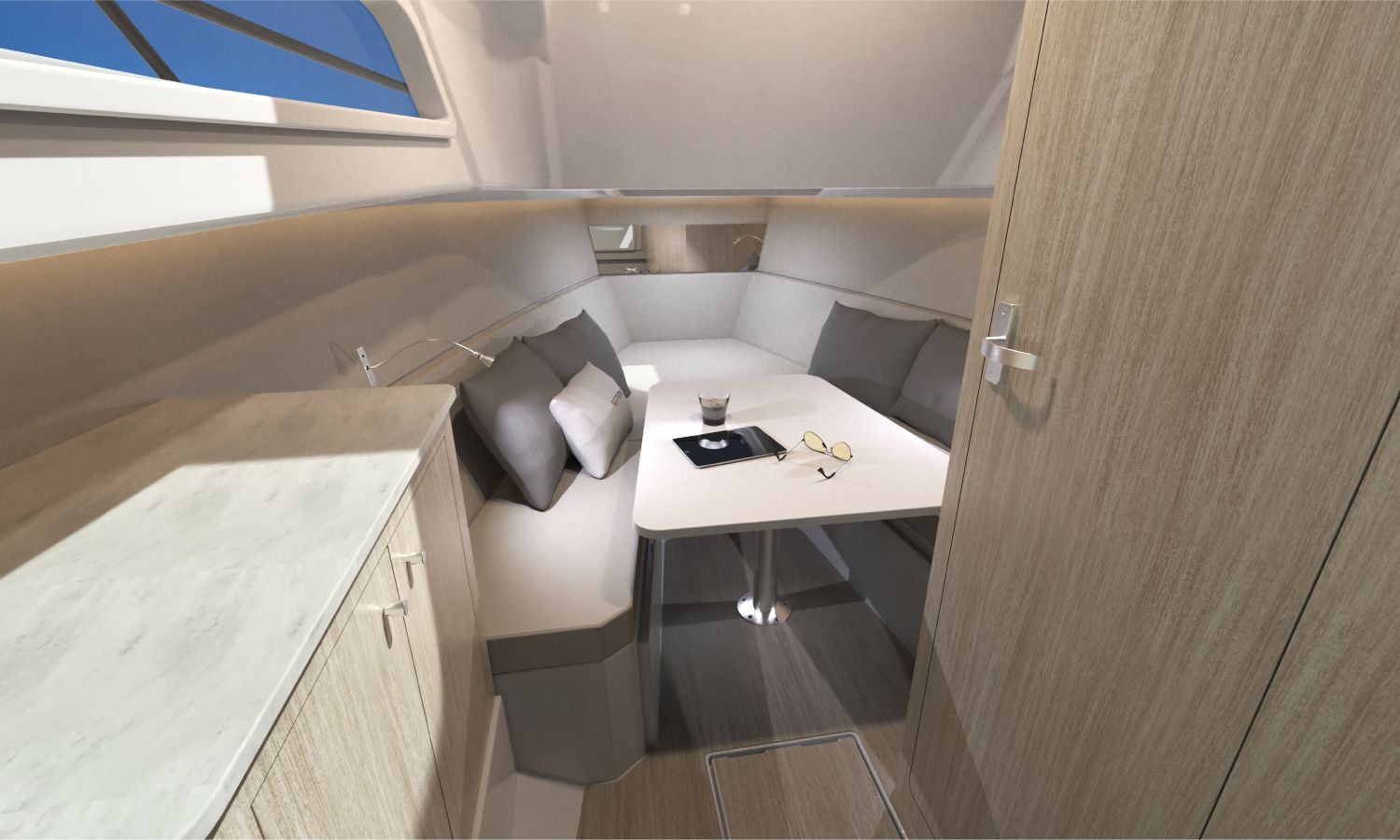 Guindeau électrique avec ancre et chaîne - Propulseur d'étrave - Leaning post dans le cockpit avec évier, réfrigérateur et cuisinière à gaz - T-Top en GRP, structure POLISHED avec feux de navigation - Mât de ski - Espace de rangement à la place de la table dans la cabine intérieure - Salle de bain avec WC et réservoir d'eaux usées - Siège latéral rabattable dans le cockpit à bâbord - Compas - Équipement électronique Q Display 210 - Sondeur - Carte nautique - Bimini à l'arrière pour T-Top - Bâche pour console et sièges du cockpit - Kit d'amarrage - Certificat du constructeur - Transport du chantier naval à la Costa Brava - Préparation, montage et mise à l'eau avec essais en mer - Peinture antifouling.Description du bateau